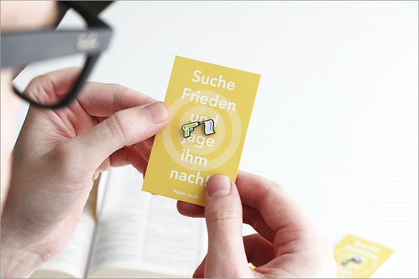 Der Pin ist ein selbstinitiiertes Projekt, mit dem ich Mitte 2017 begonnen habe. Ich wollte ein Motiv zur Jahreslosung gestalten und dabei nicht „noch einer mit einer Postkarte“ sein. Es entwickelte sich die Idee, mit Weich-Emaille zu arbeiten, mit der man unter anderem Pins gestalten kann. Ich hatte damit etwas, das einerseits sehr grafisch ist, aber eben auch ein haptisches Produkt. Etwas zum Anfassen. Die Jahreslosung 2018 war dann mein Pin-Erstlingswerk. Davon habe ich einen Probelauf von 200 Stück produzieren lassen.
