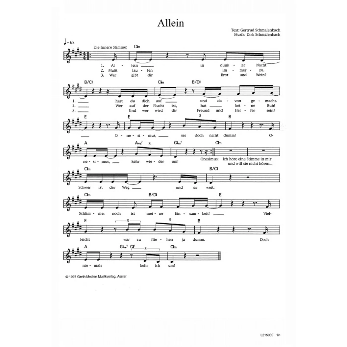 Allein (diese Variante haben Sie gerade ausgewählt) (einstimmig, mit Akkorden, Cis-Moll) Dirk Schmalenbach (Komposition), Gertrud Schmalenbach (Text) |
