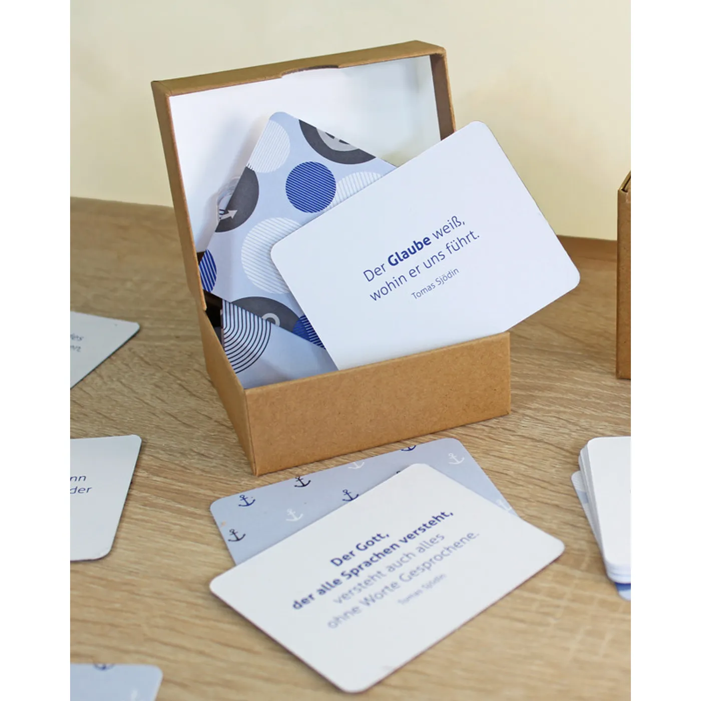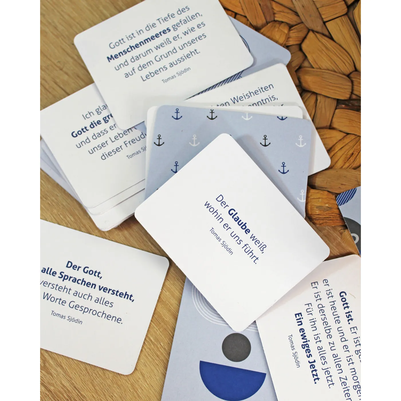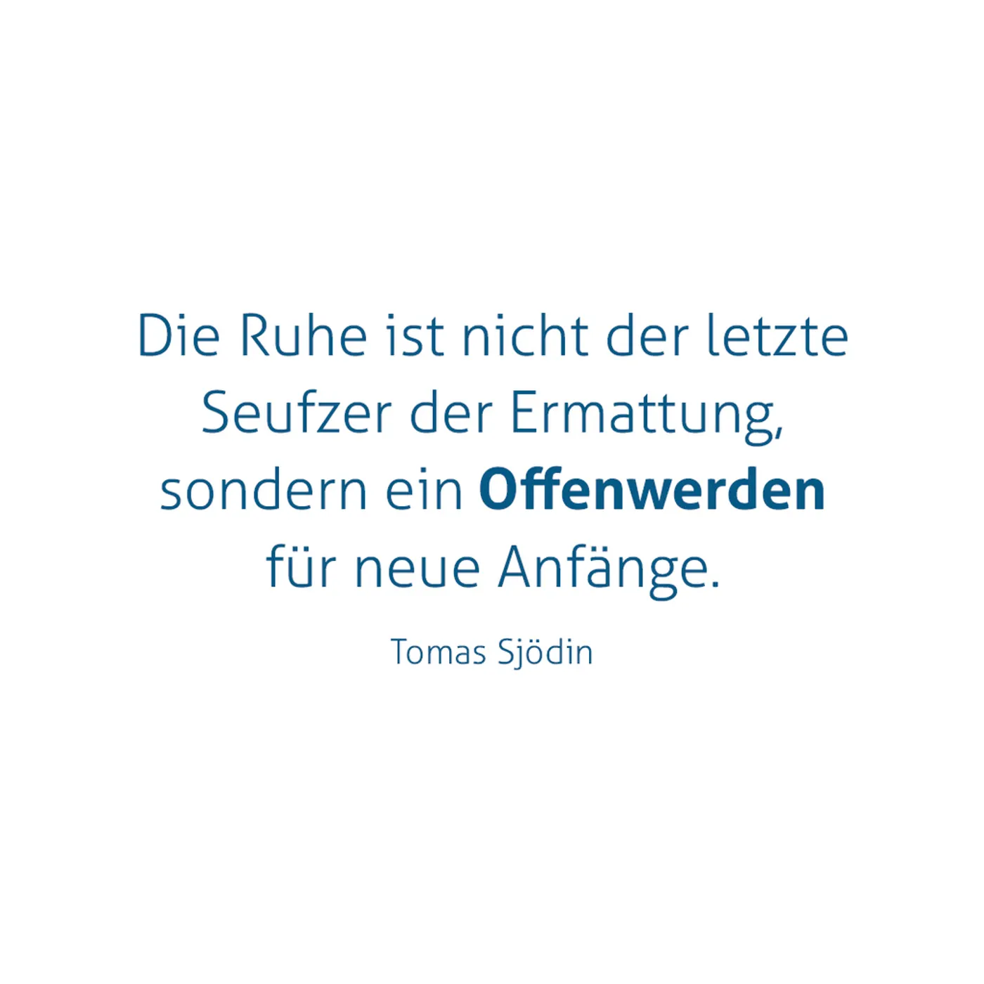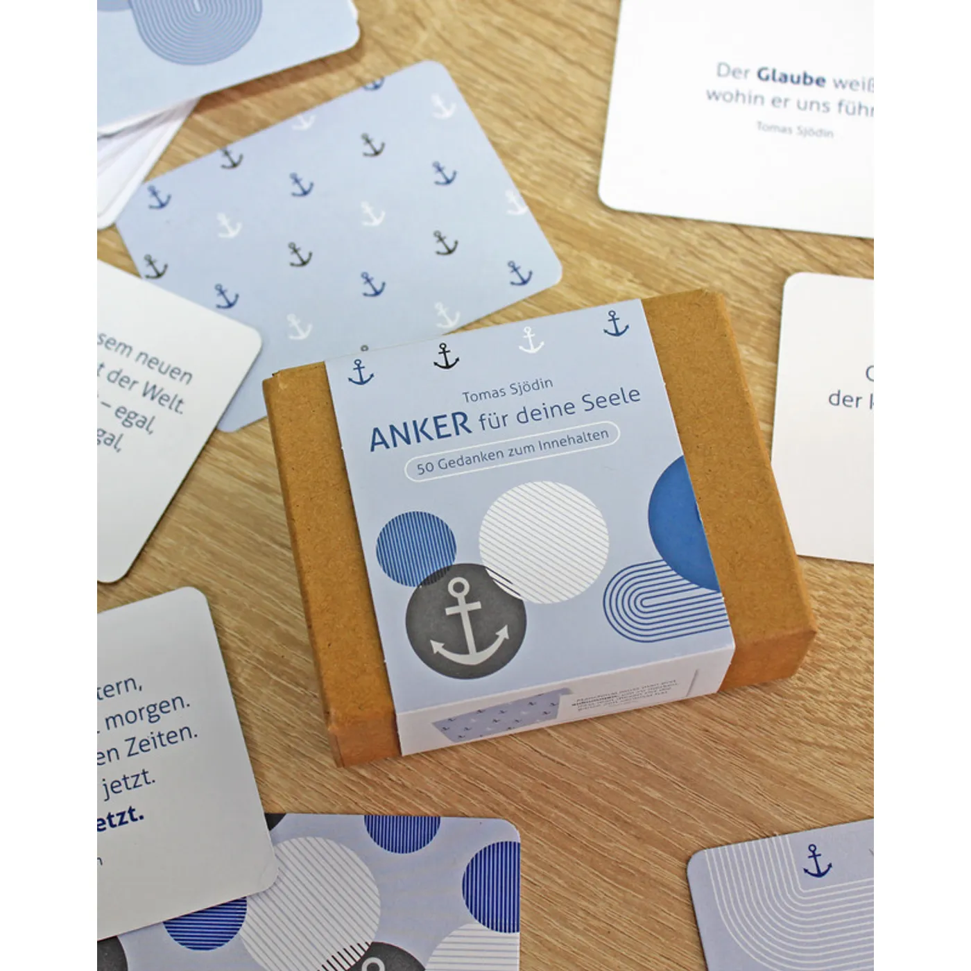 Tomas Sjödin Anker für deine Seele 50 Gedanken zum Innehalten (Schreibwaren) Die 50 nordisch maritim gestalteten Impulskarten mit Zitaten von Tomas Sjödin laden azu ein, mitten im Trubel zur Ruhe zu kommen - und sich von leisen, klugen edanken berühren zu lassen. Ergänzt durch ausgewählte Bibelverse aus derÜbersetzung The Message, entsteht ein inspirierender Mix aus Tiefgang, rost und Hoffnung."Der Gott, der schon so viele brenzlige Situationen gemeistert hat, ist dafür bekannt, hier und jetzt in deinem Leben zu sein. Er ist gegenwärtig. Du kannst aufatmen!" Tomas Sjödin 12,95 € Lieferbar Bestellen Sie den Artikel jetzt auf: Details Verlag: adeo Artikel-Nr.: 557401800 EAN: 4250454740182 Sachgebiet: Karten Seitenzahl: 50 Karten Hinweise: 2-farbige Gestaltung Maße: 9,8 x 7,5 x 3,5 cm Gewicht: 146g Download-Material: Cover-Download Angaben zum Hersteller nach GPSR: Gerth Medien i.d. SCM Verlagsgruppe GmbH Berliner Ring 62 35576 Wetzlar DEUTSCHLAND info@scm-verlagsgruppe.de Weitere Details Bewertungen Für dieses Produkt gibt es noch keine Rezensionen. Weitere Artikel von Tomas Sjödin zur Produktseite von Dem Leben Tiefe geben Dem Leben Tiefe geben Buch - Spiralbindung Der beliebte schwedische Autor Tomas Sjödin verbindet in diesem Aufstellbuch seine schönsten Zitate mit nordischer ... 14,95 € Lieferbar Alle Artikel von Tomas Sjödin anzeigen Das könnte Sie auch interessieren zur Produktseite von PUR – Wortbox PUR – Wortbox Schreibwaren Ein Moment der Stille für jeden Tag: 365 Zitate und Bibelverse laden dazu ein, sich von einem ermutigenden Gedanken ... 14,95 € Lieferbar zur Produktseite von Herztöne - Das kleine Buch Herztöne - Das kleine Buch Buch - Gebunden Das ganze Leben des Geigenbaumeisters Martin Schleske ist eine große Suche nach dem perfekten ... 14,95 € Lieferbar zur Produktseite von Die Fischerhütte im Irgendwo Die Fischerhütte im Irgendwo Buch - Gebunden Tom ist unzufrieden mit seinem Leben. Weil sich etwas ändern muss, nimmt er eine Auszeit und ... 14,95 € Lieferbar zur Produktseite von Worte voller Leben Worte voller Leben Buch - Gebunden In seinem Buch stellt Armin Jans 25 Persönlichkeiten der vergangenen Jahrhunderte vor, deren Worte uns auch heute ... 16,00 € Lieferbar
