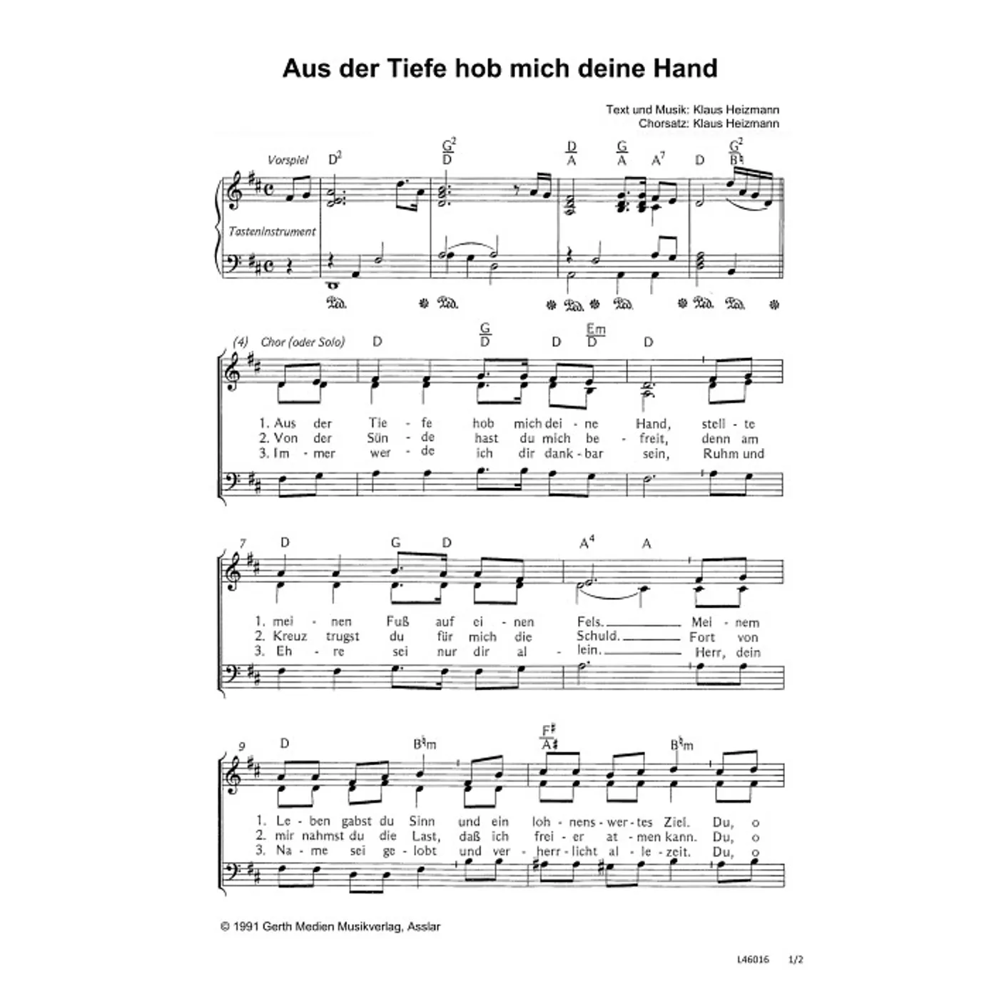 Aus der Tiefe hob mich deine Hand (diese Variante haben Sie gerade ausgewählt) (traditionell, dreistimmig, gemischter Chor, mit Akkorden, D-Dur) Klaus Heizmann (Komposition, Text, Chorsatz) |