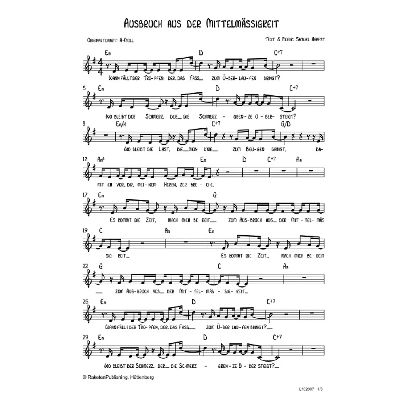 Ausbruch aus der Mittelmässigkeit (diese Variante haben Sie gerade ausgewählt) (einstimmig, mit Akkorden, E-Moll) Samuel Harfst (Komposition, Text) |