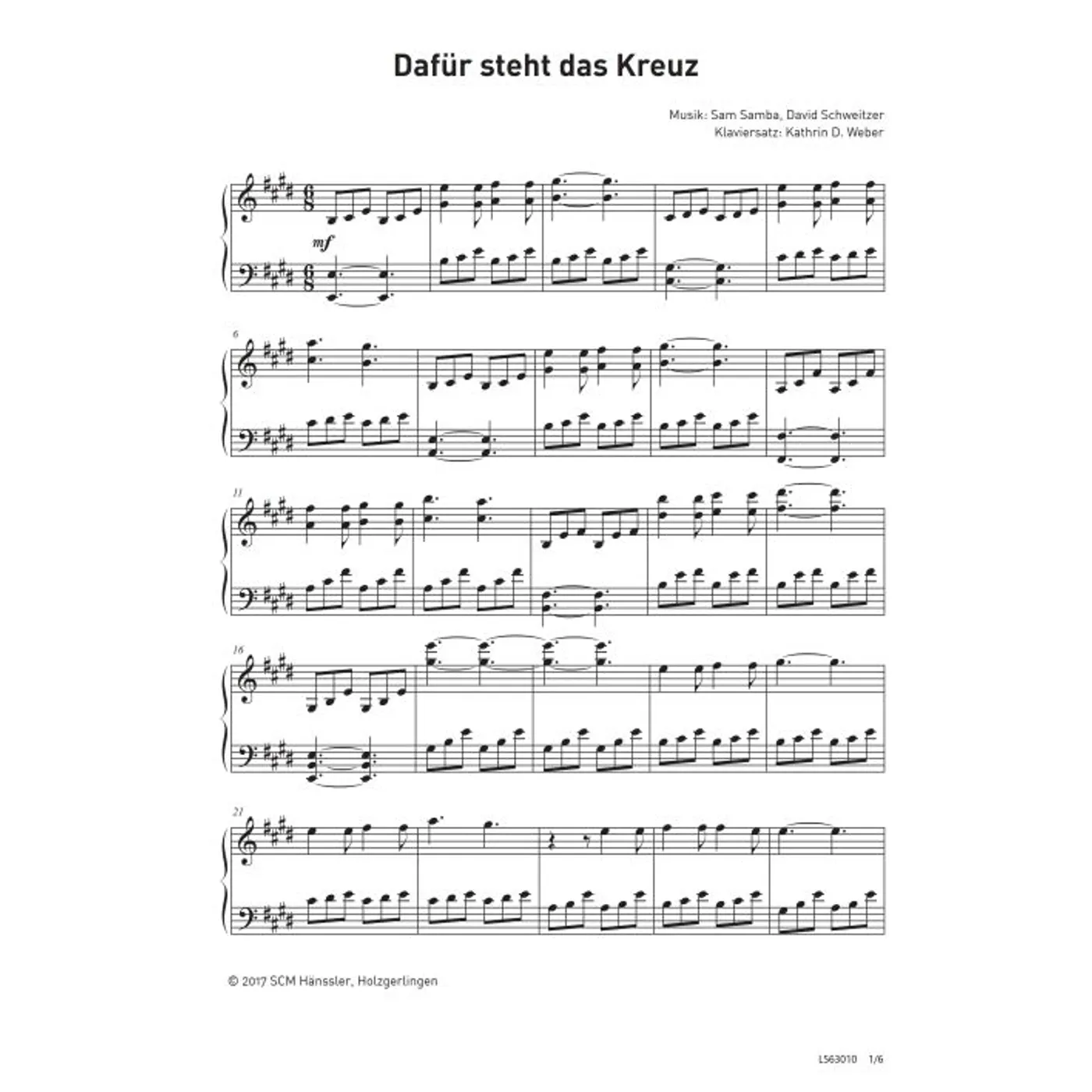 Dafür steht das Kreuz (diese Variante haben Sie gerade ausgewählt) (modern, Klavier, Klavierpartitur, Partituren) Sam Samba (Komposition), David Schweitzer (Komposition), Kathrin D. Weber (Klaviersatz) |