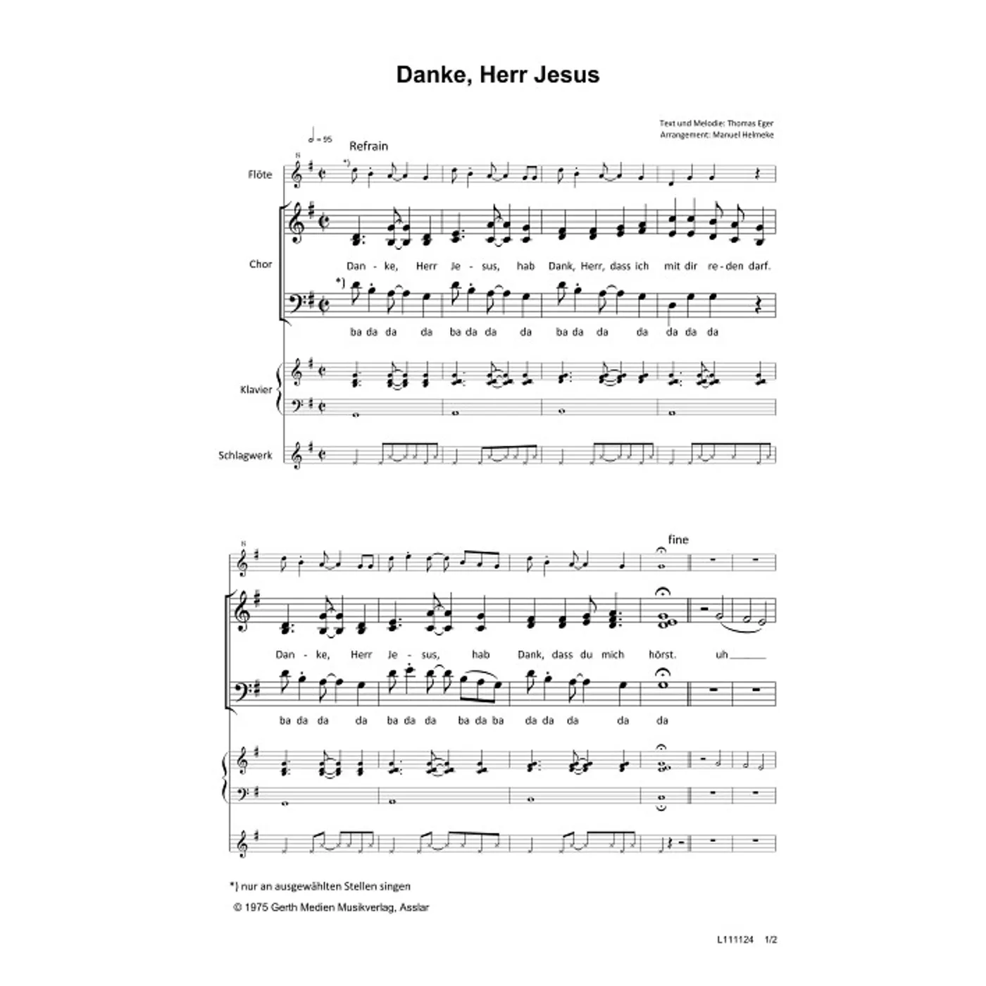 Danke, Herr Jesus (diese Variante haben Sie gerade ausgewählt) (Gemeindelied, Klavier, dreistimmig, gemischter Chor) Thomas Eger (Komposition, Text), Manuel Helmeke (Bearbeiter) |