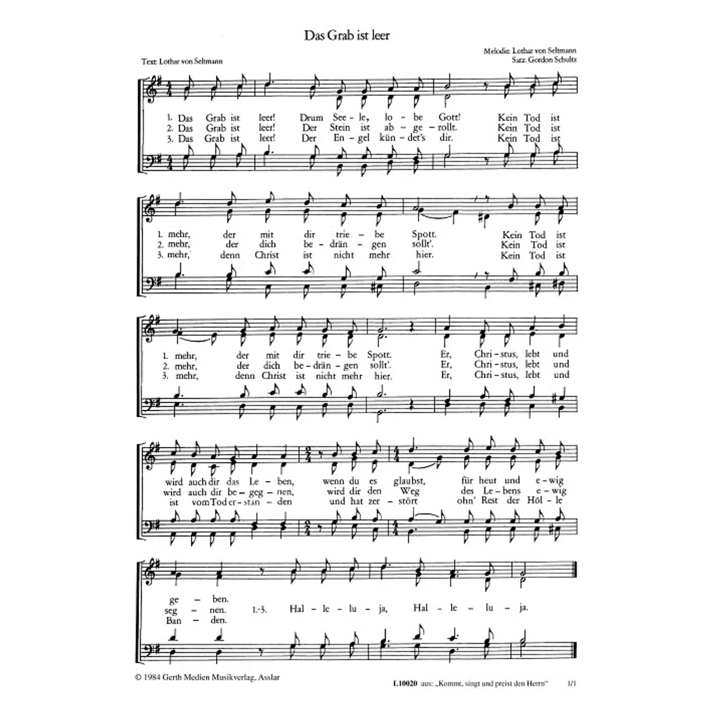 Das Grab ist leer (diese Variante haben Sie gerade ausgewählt) (traditionell, gemischter Chor, vierstimmig) Lothar von Seltmann (Komposition, Text), Gordon Schultz (Chorsatz) |