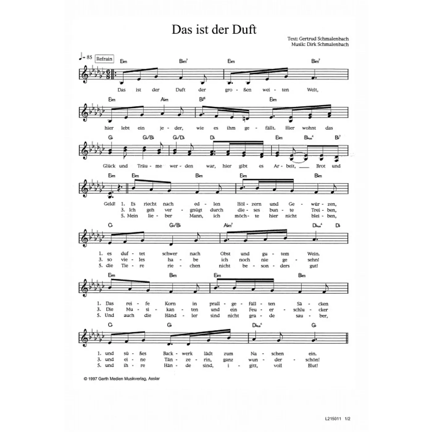 Das ist der Duft (diese Variante haben Sie gerade ausgewählt) (mit Akkorden, zweistimmig) Gertrud Schmalenbach (Text), Dirk Schmalenbach (Bearbeiter, Komposition) |