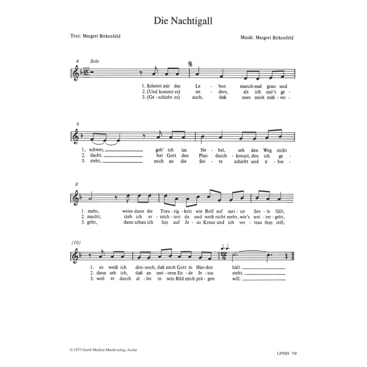 Die Nachtigall (diese Variante haben Sie gerade ausgewählt) (traditionell, Frauenchor, Solostimme, dreistimmig) Margret Birkenfeld (Komposition, Text, Chorsatz) |