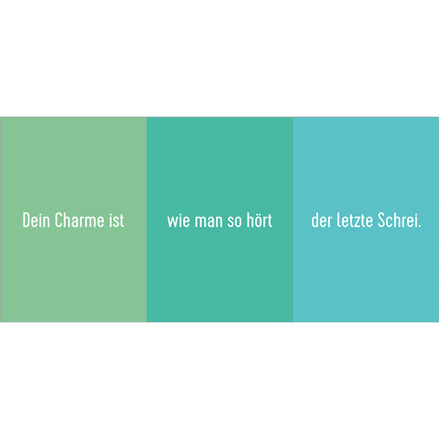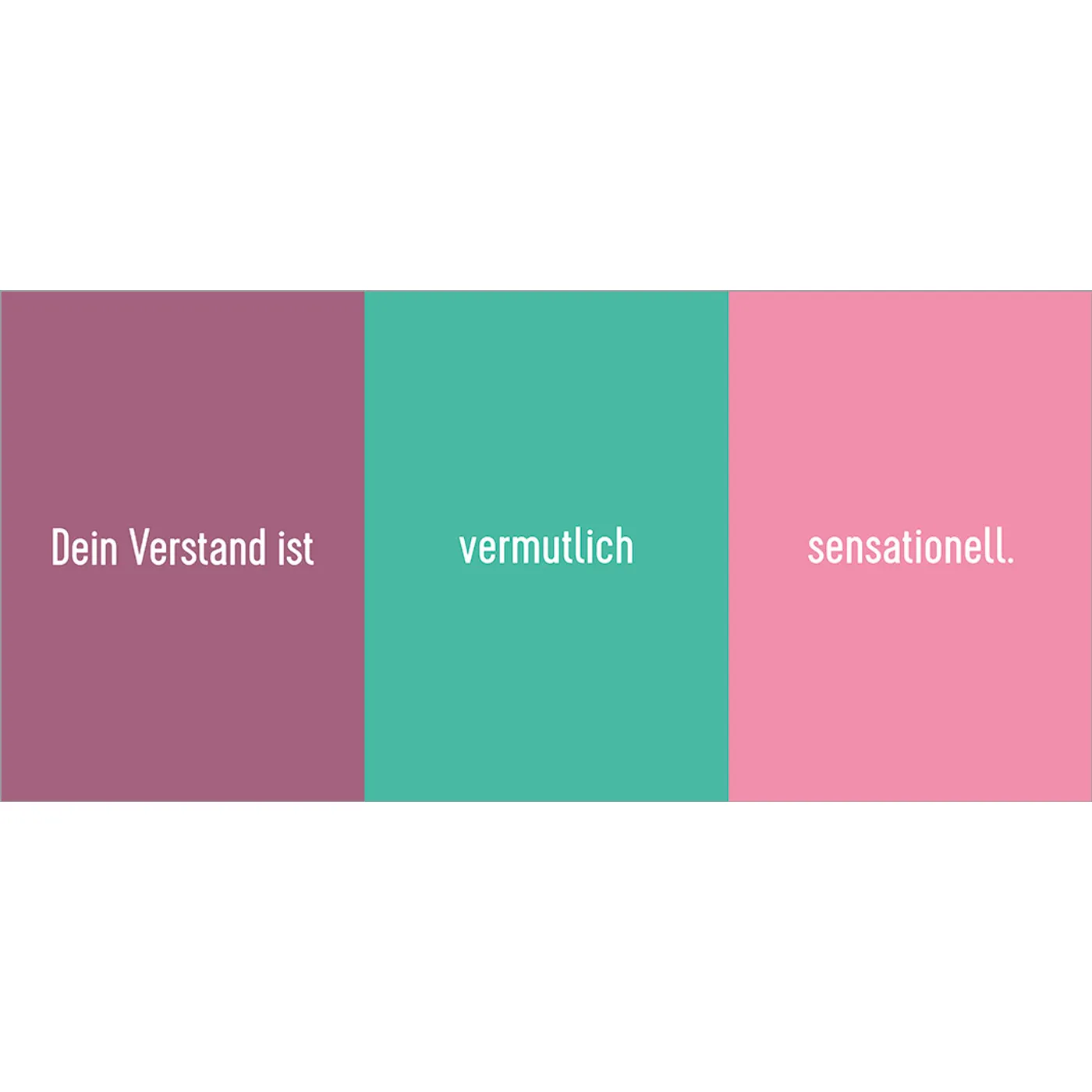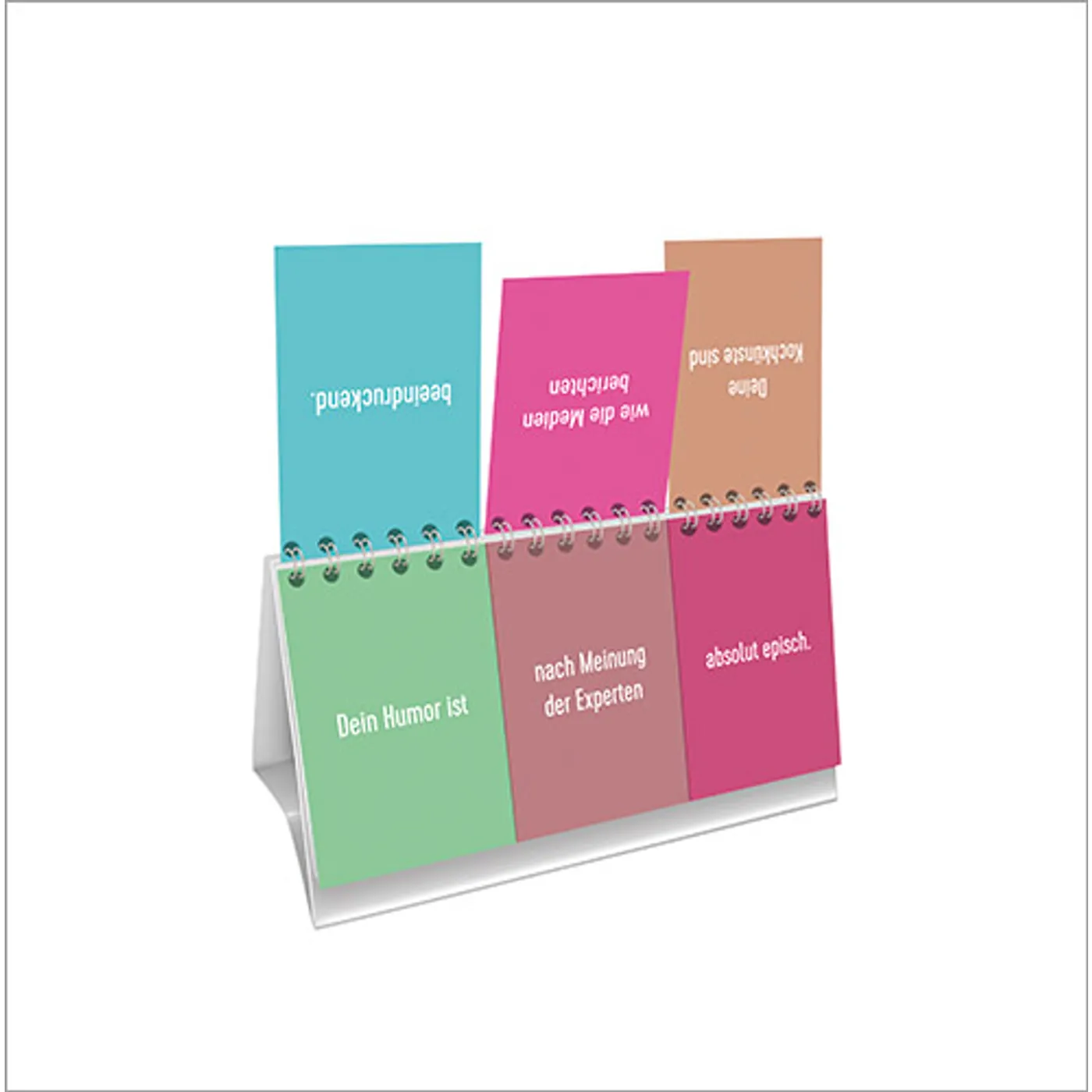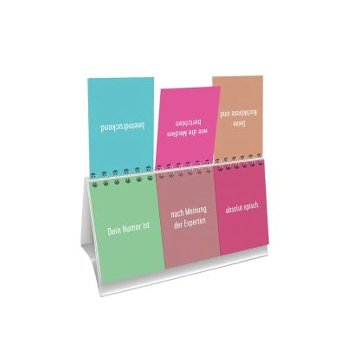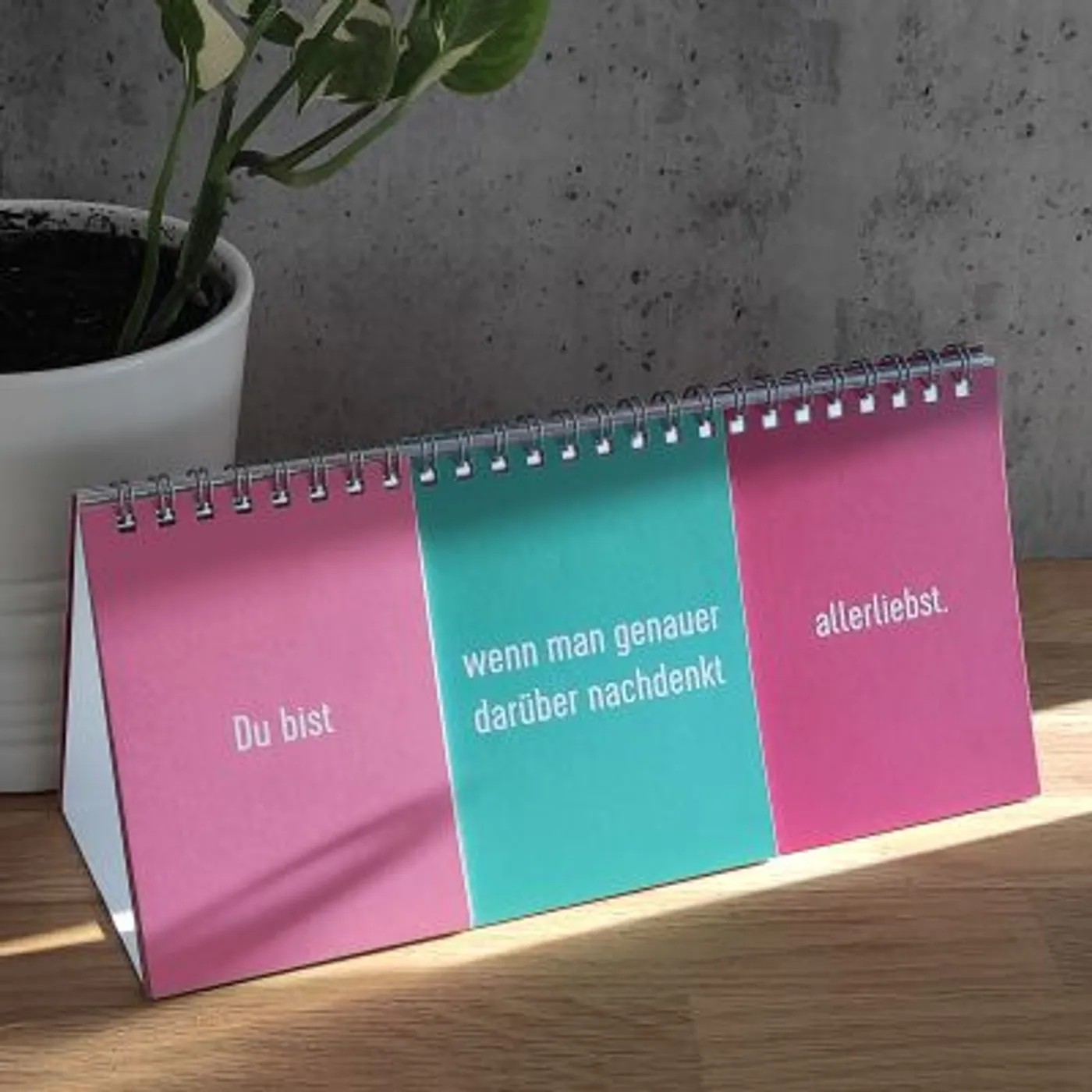 Gerade im Alltagstrubel fällt es manchmal schwer, zwischen Haushaltspflichten und Freizeitstress die liebenswerten Marotten des Mitbewohners mit einem netten Kompliment zu kommentieren. Der Nachfolger des beliebten Sprüchegenerators "Drei-heilig-keit" beschäftigt sich mit den Themen Beziehung, Kommunikation und Alltag. Mit einem Augenzwinkern kombiniert er Satzbausteine zu netten Botschaften - überraschend, amüsant und neckisch. Für einen Perspektivwechsel im Miteinander und erfrischende Dialoge!