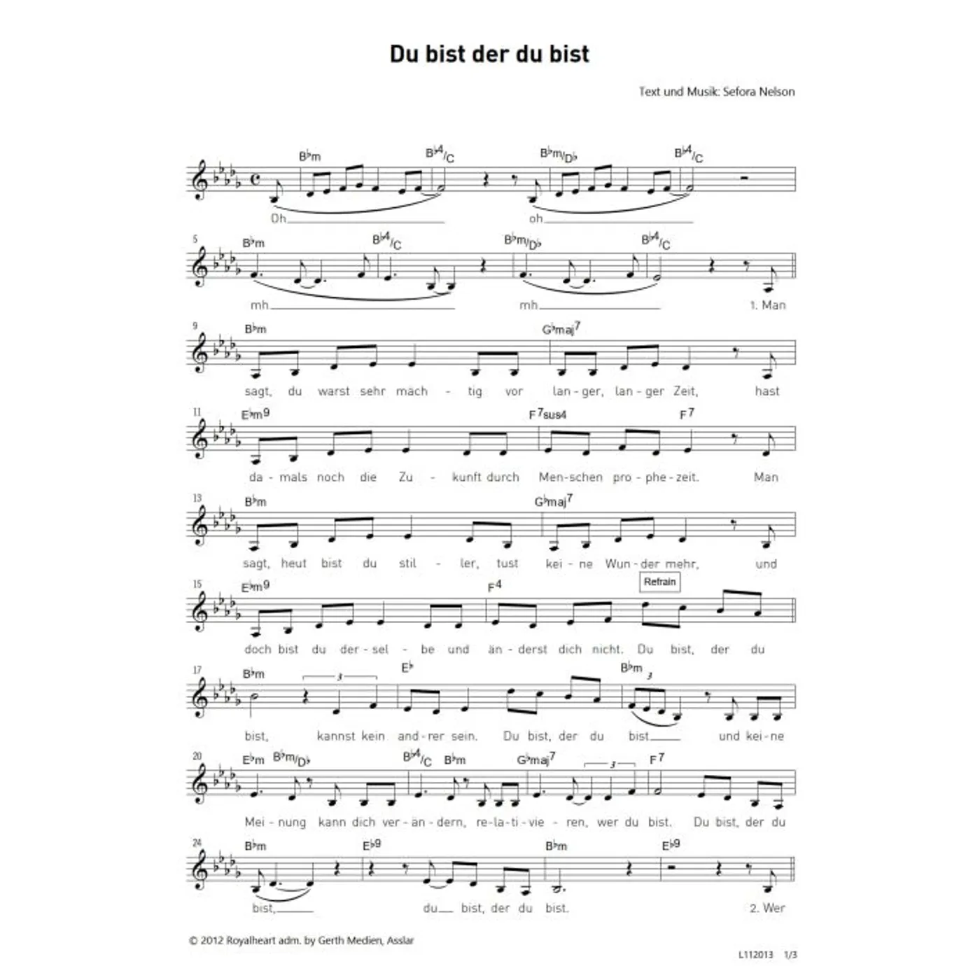 Du bist der du bist (diese Variante haben Sie gerade ausgewählt) (einstimmig, mit Akkorden, B-Moll) Sefora Nelson (Komposition, Text) |