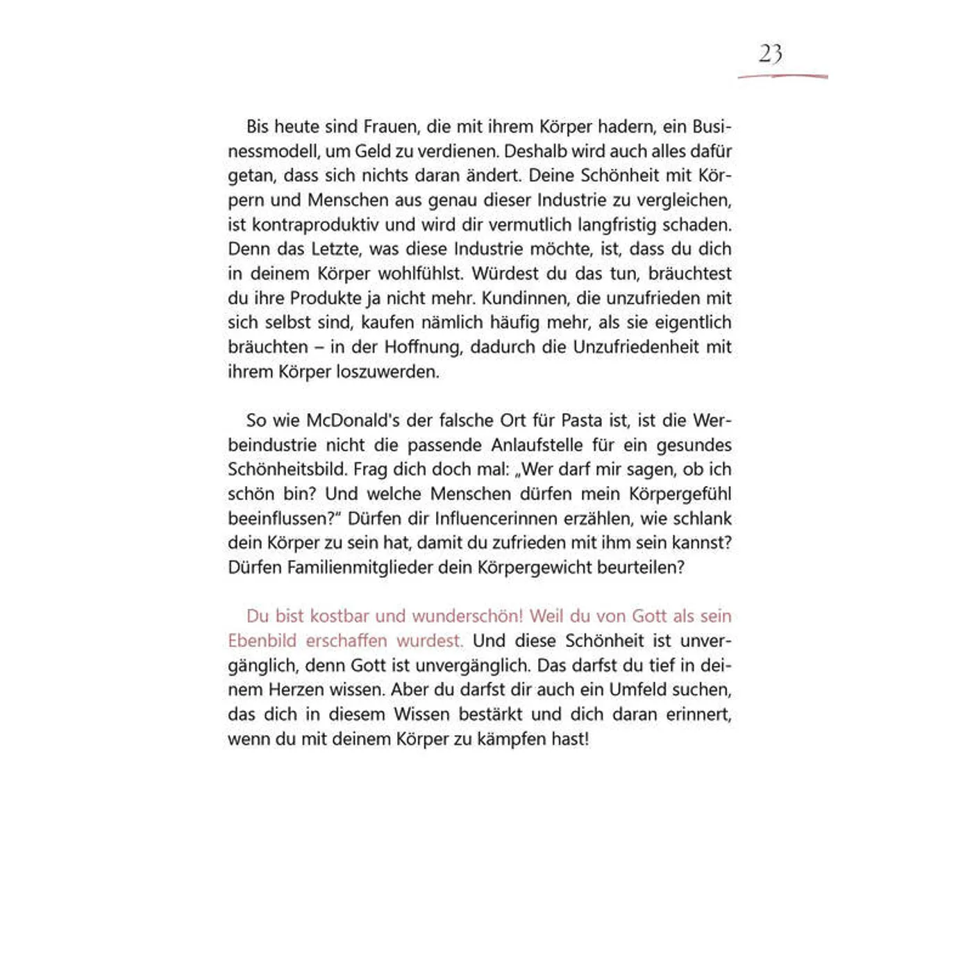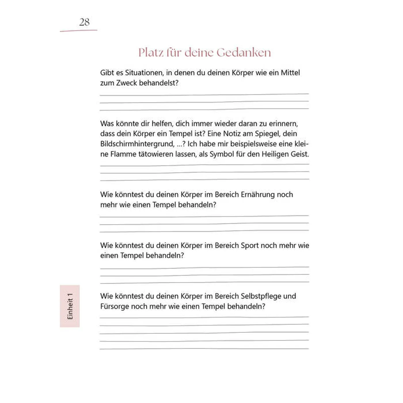 Mit Fragen, Denkanstößen und viel Platz für deine eigenen Gedanken wirst du eingeladen, dich selbst besser kennenzulernen, zu reflektieren und deine Identität in Gottes Liebe zu entdecken. Dieses Buch ist dein Mutmachbuch, um dich selbst zu feiern und zu erkennen: Du bist kostbar, du bist geliebt, du bist genug!
