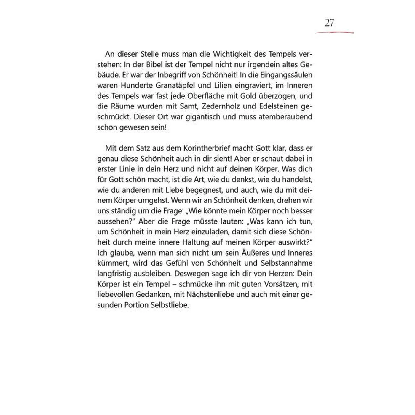 Dieses Buch möchte dir Seite für Seite zeigen: Du bist wertvoll, einzigartig und von Gott geliebt - genau so, wie du bist! Kira Geiss nimmt dich mit auf eine persönliche Reise zu mehr Selbstannahme, Mut und innerer Stärke. Mit ermutigenden Bibelversen, wertvollen Impulsen und interaktiven Videobotschaften christlicher Influencerinnen erfährst du, dass dein Wert nicht von Leistung, Aussehen oder der Meinung anderer abhängt.