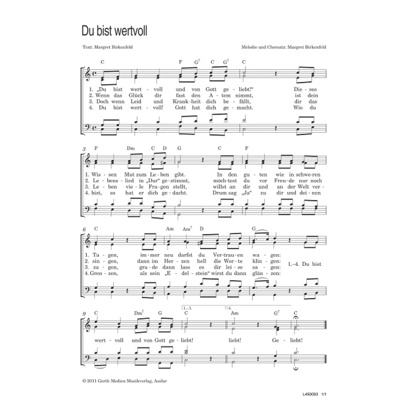Du bist wertvoll (diese Variante haben Sie gerade ausgewählt) (traditionell, gemischter Chor, mit Akkorden, vierstimmig, C-Dur) Margret Birkenfeld (Komposition, Text, Bearbeiter) |