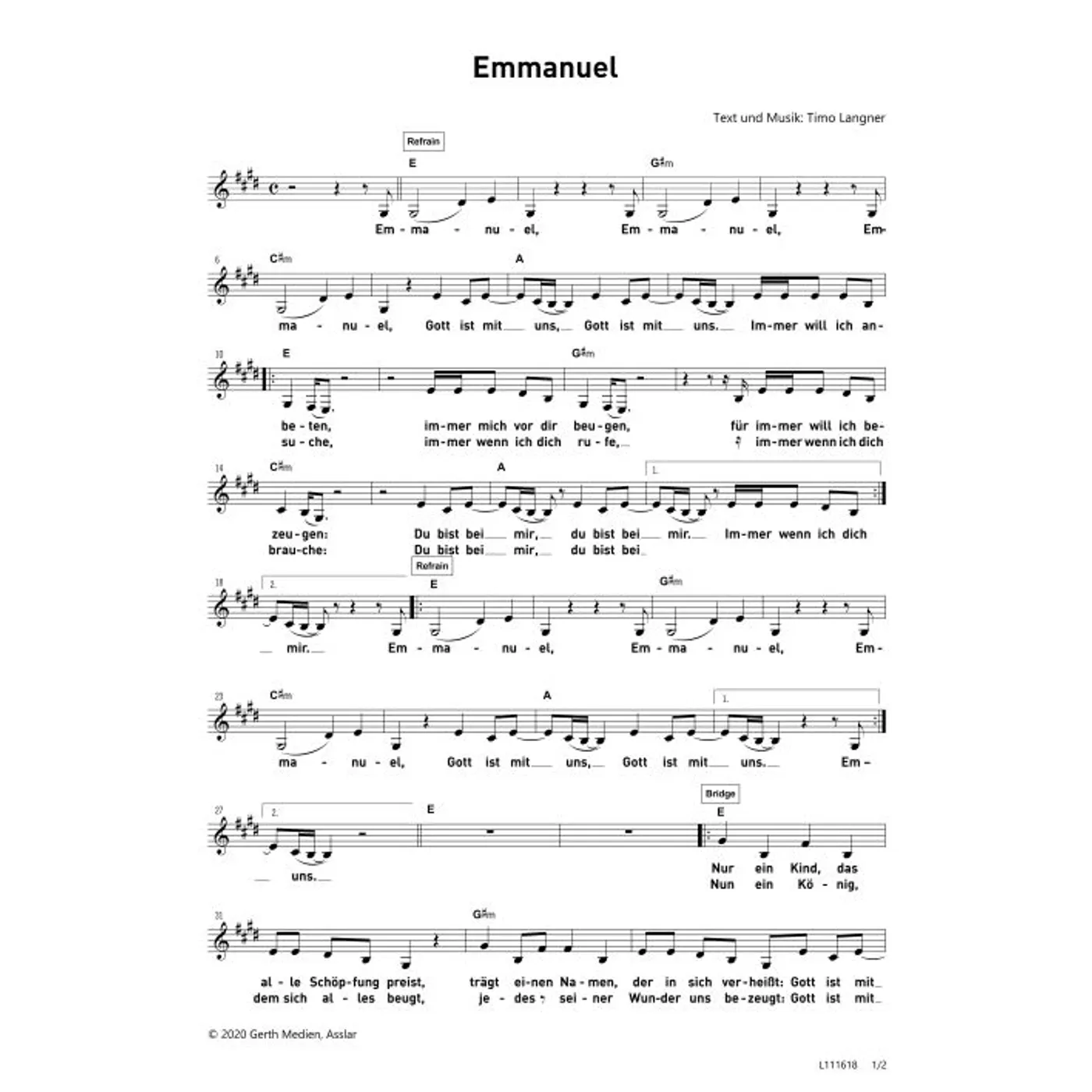 Emmanuel (diese Variante haben Sie gerade ausgewählt) (einstimmig, mit Akkorden, E-Dur) Timo Langner (Komposition, Text) |