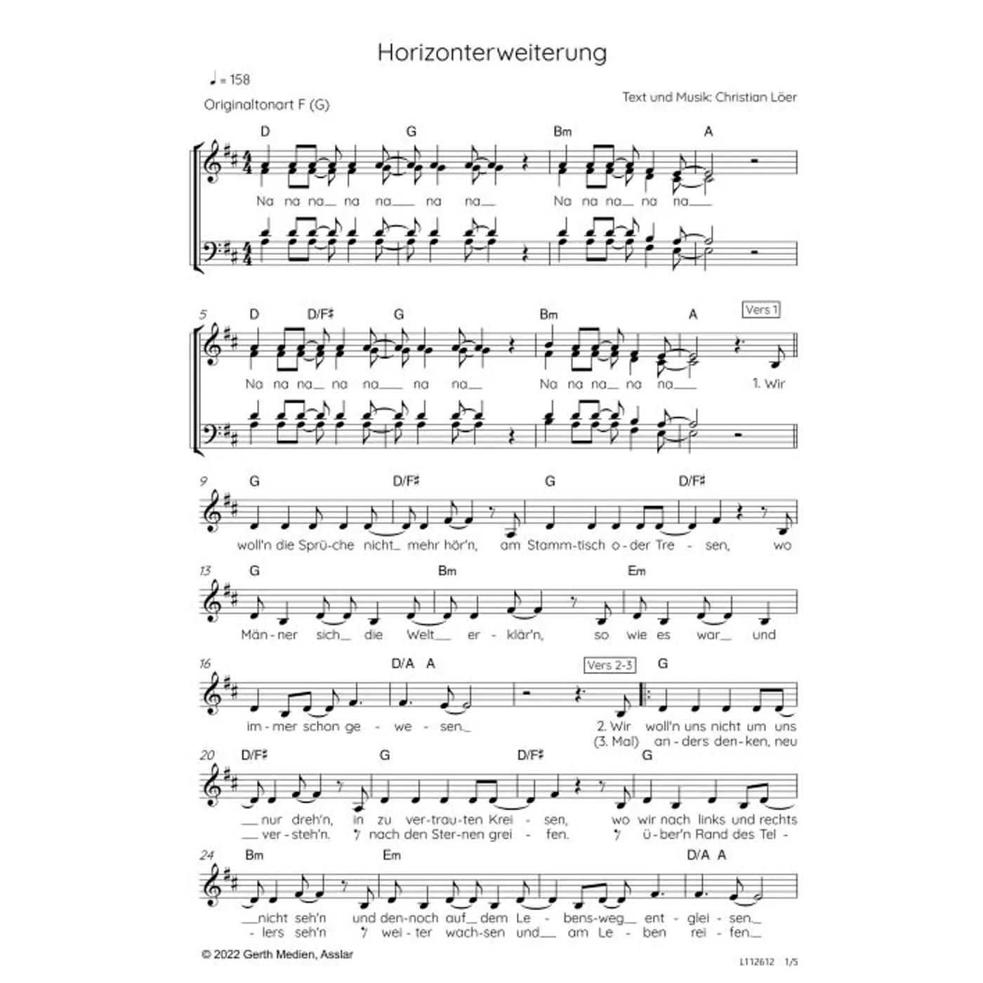Horizonterweiterung (diese Variante haben Sie gerade ausgewählt) (modern, einstimmig, mit Akkorden, D-Dur) Christian Löer (Text, Komposition) |