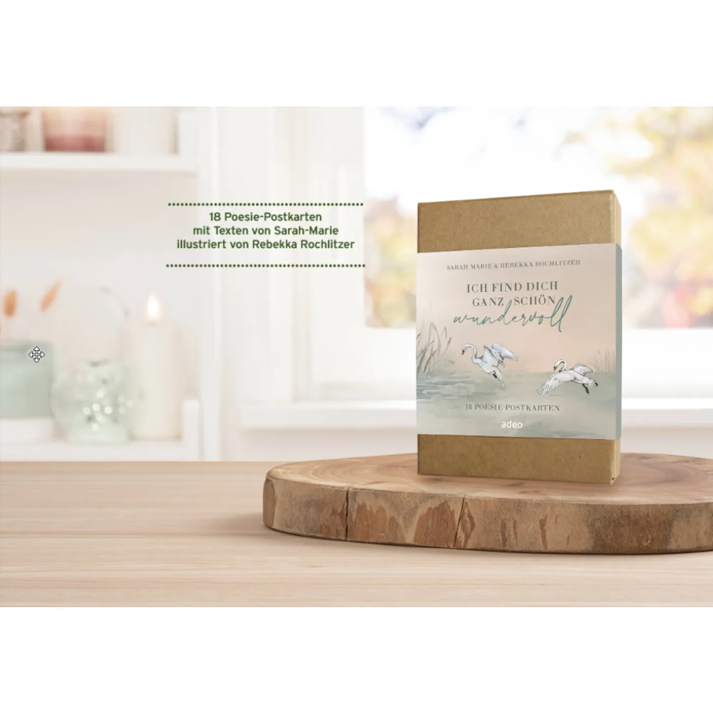 Sarah Marie Rebekka Rochlitzer (Illustr.) Ich find dich ganz schön wundervoll 18 Poesie-Postkarten voller Ermutigung (Schreibwaren) „Du bist ein Kunstwerk aus der Hand des größten Künstlers aller Zeiten. Sein Pinselstrich malte dein Sein, signierte deine Seiten. Monet, Picasso, niemand sonst malt Schöneres als er. Und dass Gott selbst dein Schöpfer ist, verleiht dir deinen Wert. Du musst nichts weiter dafür tun.“Wenn Rebekka Rochlitzer und Sarah Marie ihre Stile vereinen, entsteht ein besonderes Postkartenset voller Wärme und Zuspruch. Poetische Texte treffen auf zauberhafte Illustrationen. Das Set enthält 18 hochwertige Karten mit 9 Motiven – ideal zum Behalten und Verschenken. In einer stabilen Scharnierbox stilvoll verpackt: ein Geschenk, das von Herzen kommt. 16,00 € Lieferung nach Erscheinen Dieser Titel ist voraussichtlich ab Ende August 2026 lieferbar Artikel jetzt vormerken auf: Details Verlag: adeo Artikel-Nr.: 557391600 EAN: 4250454739162 Sachgebiet: Karten Seitenzahl: 18 S. Hinweise: 2 x 9 Motive; 4-farbige Gestaltung Maße: 11 x 15,5 cm Gewicht: 1g Download-Material: Cover-Download Angaben zum Hersteller nach GPSR: Gerth Medien i.d. SCM Verlagsgruppe GmbH Berliner Ring 62 35576 Wetzlar DEUTSCHLAND info@scm-verlagsgruppe.de Weitere Details Bewertungen Für dieses Produkt gibt es noch keine Rezensionen. Das könnte Sie auch interessieren zur Produktseite von WiesenTraum WiesenTraum Ein Stück Sommerwiese für Zuhause oder zum Verschenken: 14 liebevoll illustrierte Blumenkarten von Rebekka ... 14,95 € Lieferbar zur Produktseite von SegensWünsche SegensWünsche Schreibwaren Blumen zum Geburtstag! Die wunderschönen Postkarten von Rebekka Rochlitzer sorgen beim Empfänger garantiert für ... 14,95 € Lieferbar zur Produktseite von IdeenWiese – Notizbuch IdeenWiese – Notizbuch Schreibwaren - Gebunden Das hübsch gestaltete Notizbuch hat eine dezente Goldprägung auf dem Einband und ist innen mit ... 14,95 € Lieferbar zur Produktseite von AlltagsgeDanken - Tintenroller AlltagsgeDanken - Tintenroller Schreibwaren Egal, ob die lange Einkaufsliste, der nette Gruß auf der Geburtstagskarte oder der geschätzte ... 9,95 € 14,95 € Lieferbar zur Produktseite von HoffnungsSchimmer HoffnungsSchimmer Schreibwaren Wir erweitern unsere bezaubernde Produktwelt der Illustratorin Rebekka Rochlitzer um ein weiteres Schmuckstück: 24 ... 20,00 € Lieferbar