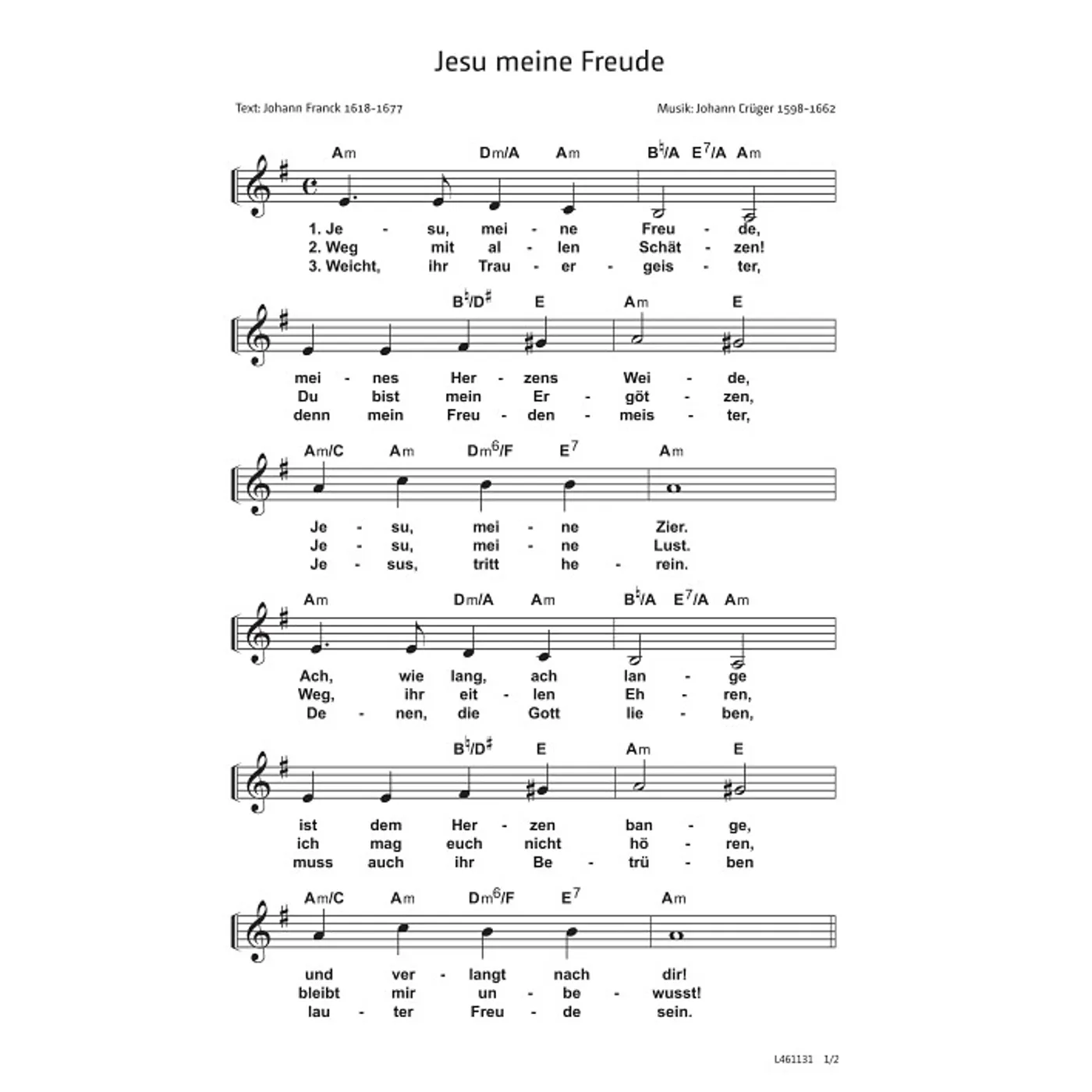 Jesu meine Freude (diese Variante haben Sie gerade ausgewählt) (Gemeindelied, traditionell, einstimmig, mit Akkorden, E-Moll) Johann Crüger (Komposition), Johann Franck (Text) |