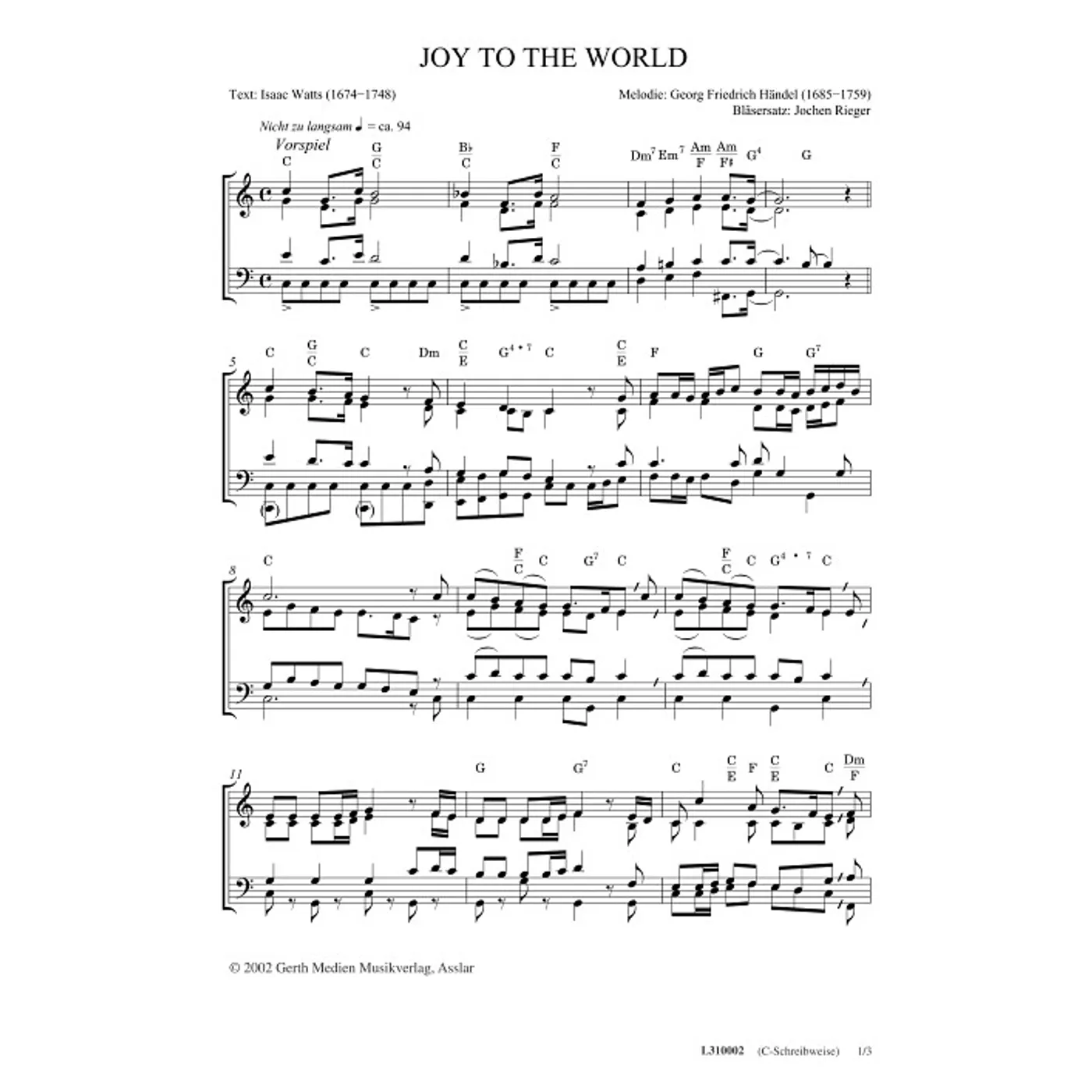 Joy To The World (traditionell, Bläser, Orchestereinzelstimme, B-Dur, gleiche Reihe) Georg Friedrich Händel (Komposition), Jochen Rieger (Bläsersatz) | traditionell, Bläser, Orchestereinzelstimme, B-Dur, gleiche Reihe | 2,80 € |