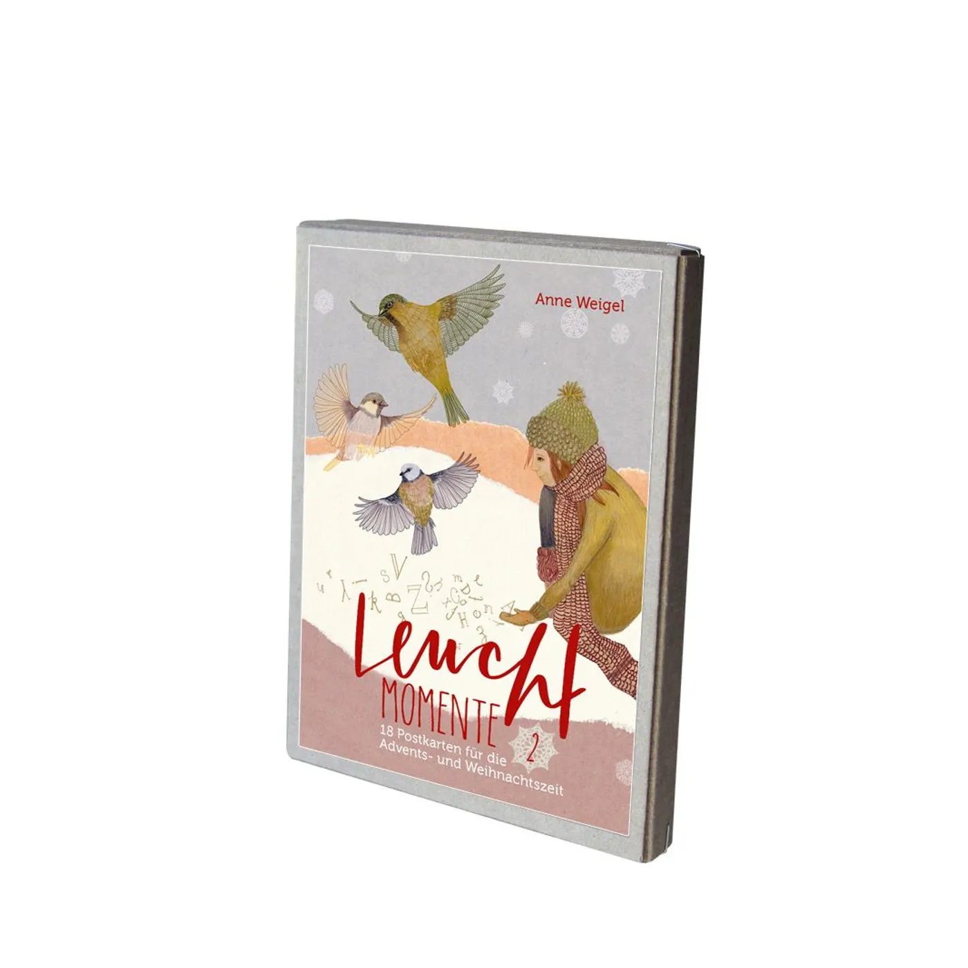 Anne Engel (Gestaltung) Leuchtmomente 2 - Postkartenbox 18 Postkarten für die Advents- und Weihnachtszeit (Schreibwaren) Ein Mädchen, das im Winter die Vögel füttert ... doch halt, sind das goldene Buchstaben, die sie ihnen hinstreut? Die Illustrationen von Anne Weigel sind auf den ersten Blick verzaubernd - und oft lohnt es sich, noch genauer hinzusehen.In dieser stylischen Postkarten-Box sind die schönsten Motive aus dem beliebten Leuchttage-Kalender 2019 versammelt. Zum Genießen, Dekorieren oder Weiterverschenken nicht nur zur Advents- und Weihnachtszeit. 7,95 € 12,00 € Vergriffen, nicht mehr lieferbar Details Verlag: adeo Artikel-Nr.: 557298400 EAN: 4250454729842 Sachgebiet: x Karten Weihnachten/Advent Seitenzahl: 18 Karten Hinweise: Offenporiges Naturpapier, 2 x 9 versch. Motive Maße: 15,5 x 11,5 x 1,6 cm Gewicht: 127g Angaben zum Hersteller nach GPSR: Gerth Medien i.d. SCM Verlagsgruppe GmbH Berliner Ring 62 35576 Wetzlar DEUTSCHLAND info@scm-verlagsgruppe.de Weitere Details Bewertungen Für dieses Produkt gibt es noch keine Rezensionen. Das könnte Sie auch interessieren zur Produktseite von Weihnachtsleuchten - Postkartenset Weihnachtsleuchten - Postkartenset Schreibwaren - Kartoniert Die einzigartigen Collagen der Illustratorin Anne Weigel aus dem „Leuchttage“- Kalender in ... 10,00 € Lieferbar zur Produktseite von Kunstkarten-Set "In Liebe verbunden" Kunstkarten-Set "In Liebe verbunden" Schreibwaren Dieser hochwertige Schmuckkarton enthält zehn Kunst-Faltkarten mit Lichtgestalten-Motiven von ... 6,95 € 20,00 € Lieferbar