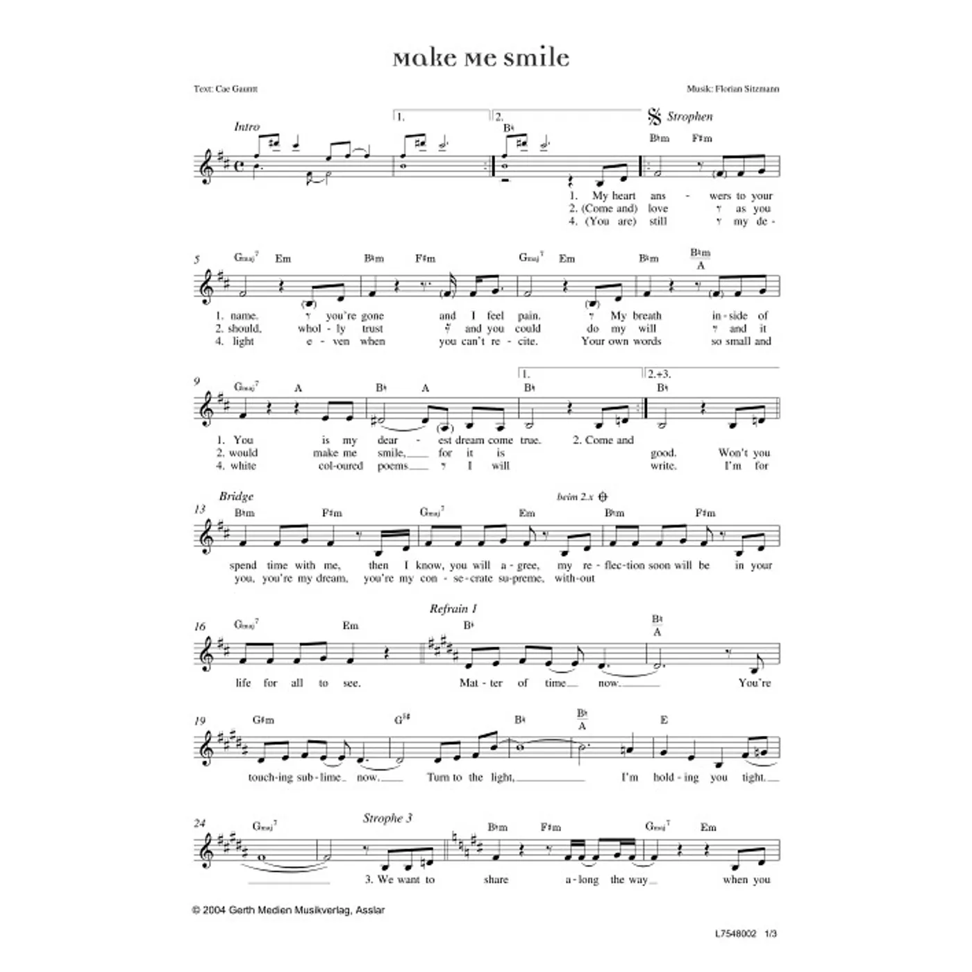Make Me Smile (diese Variante haben Sie gerade ausgewählt) (einstimmig, mit Akkorden, h-Moll) Florian Sitzmann (Komposition), Cae Gauntt (Text) |