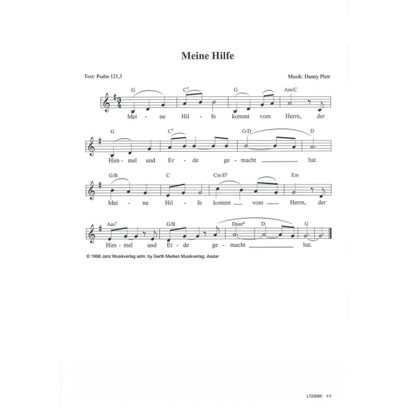 Meine Hilfe (diese Variante haben Sie gerade ausgewählt) (einstimmig, mit Akkorden, G-Dur) Danny Plett (Komposition) |
