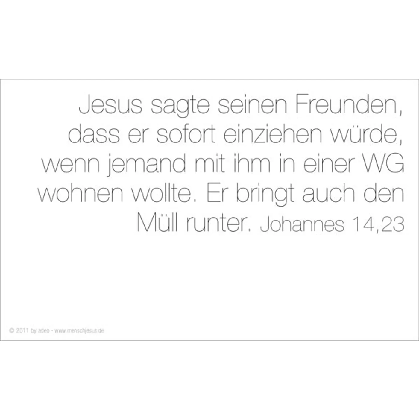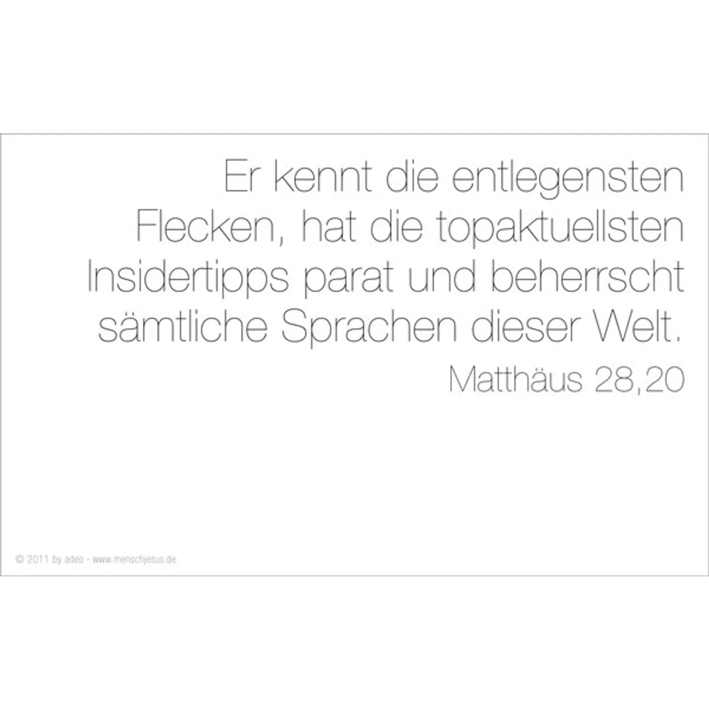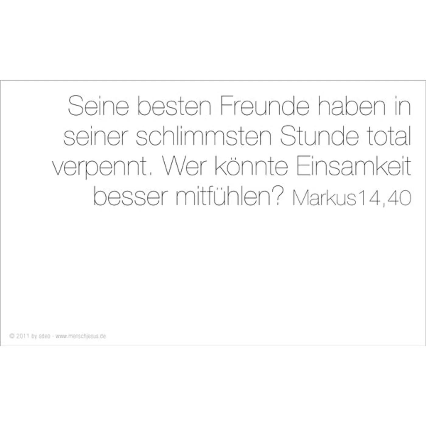 Eva Jung bringt es auf den Punkt. Ungewöhnliche Bilder, starke Texte, die den Blick auf einen ganz besonderen Menschen richten: Jesus. Gottes Sohn und doch ganz Mensch. Klar in seinen Ansagen, liebevoll zu jedem Einzelnen. Die wichtigste Botschaft aller Zeiten in einer Sprache, die jeder versteht, und in Bildern, die unseren Alltag bestimmen.