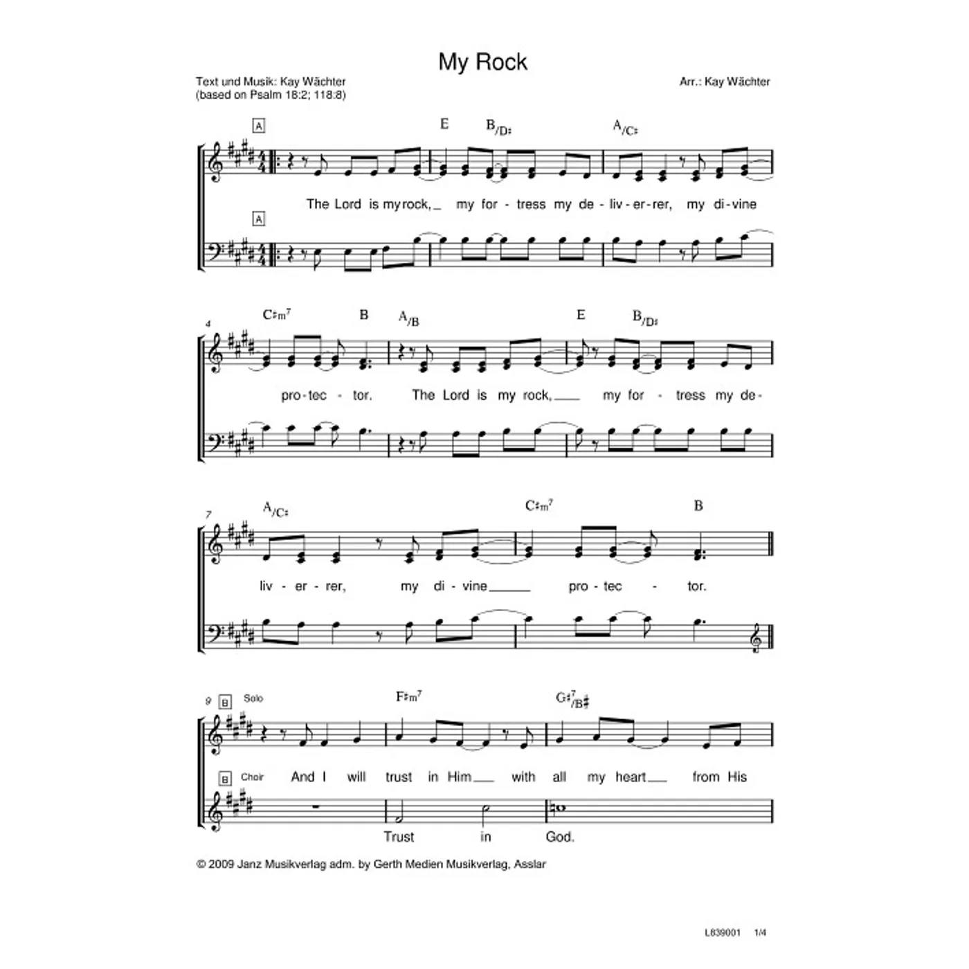My Rock (diese Variante haben Sie gerade ausgewählt) (modern, Backings, Solostimme, dreistimmig, gemischter Chor, mit Akkorden, E-Dur) Kay Wächter (Komposition, Text, Chorsatz) |