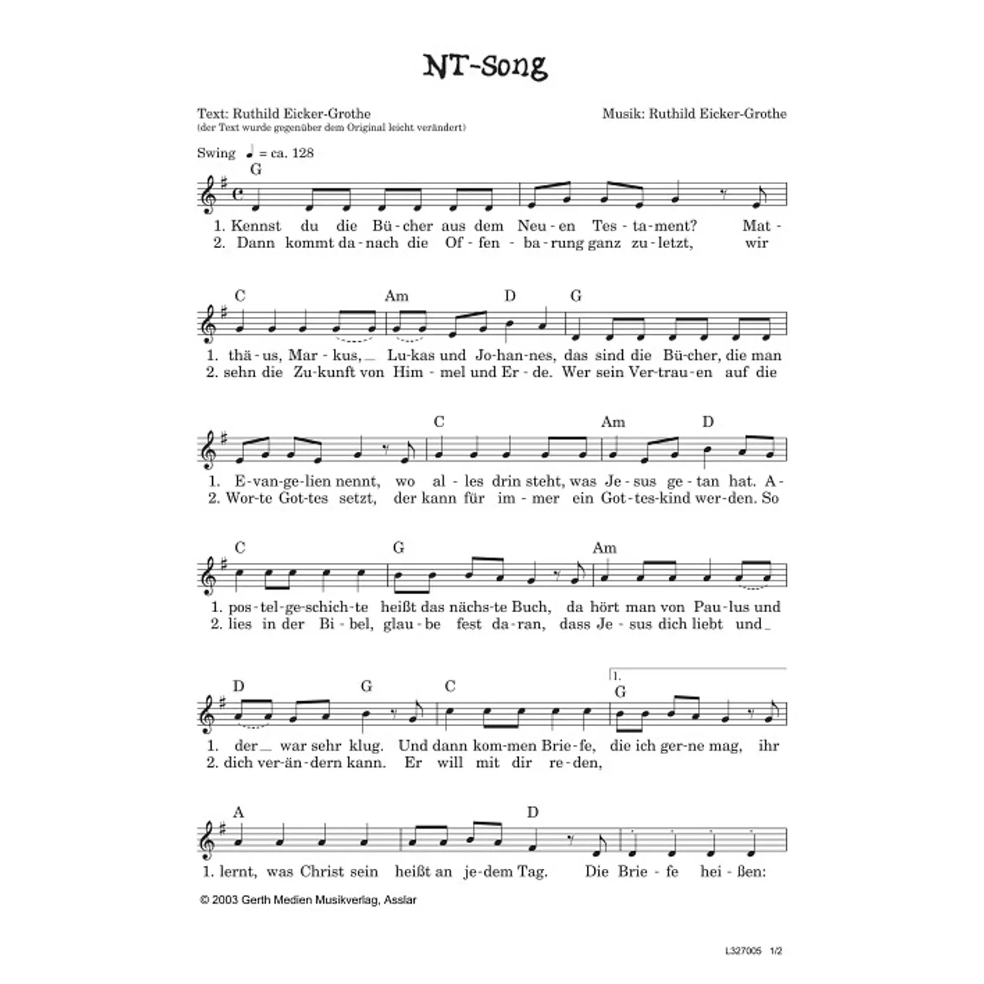 NT-Song (diese Variante haben Sie gerade ausgewählt) (einstimmig, mit Akkorden, G-Dur) Ruthild Eicker (Komposition, Text) |
