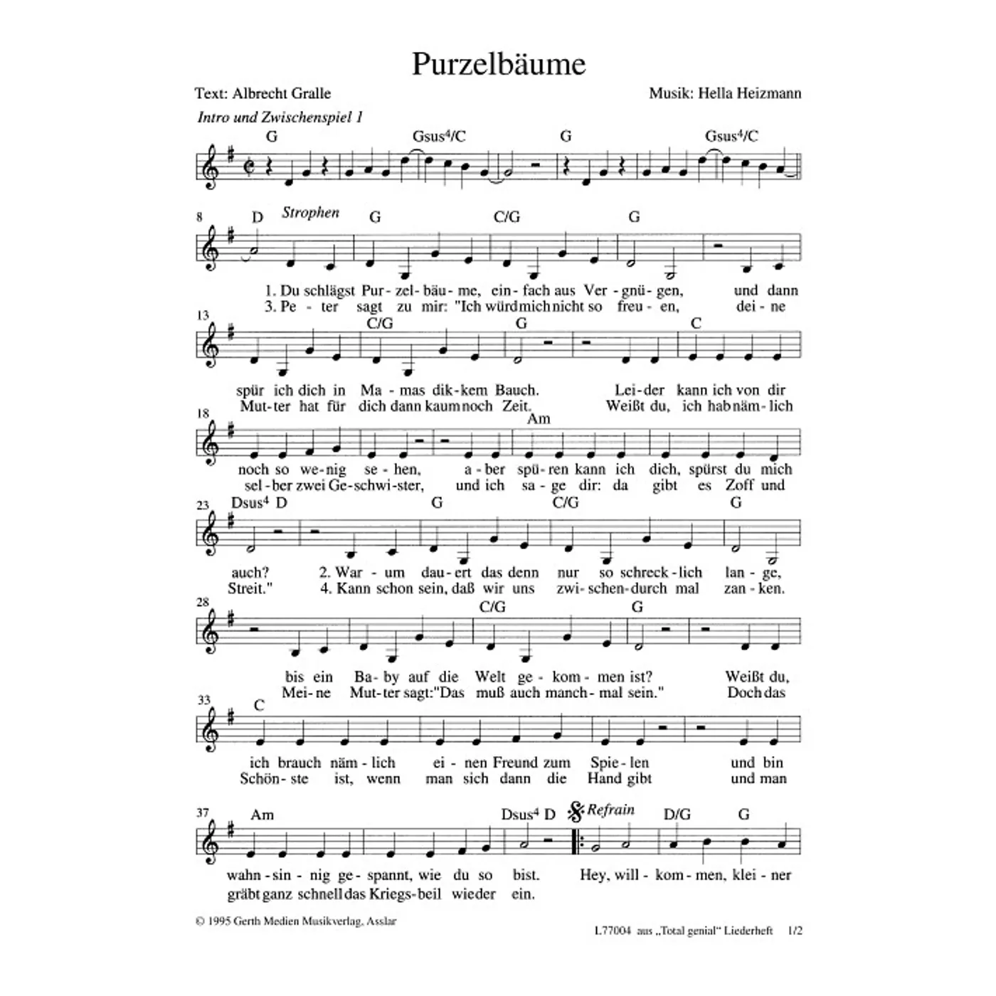 Purzelbäume (diese Variante haben Sie gerade ausgewählt) (einstimmig, mit Akkorden, G-Dur) Albrecht Gralle (Text), Hella Heizmann (Komposition) |