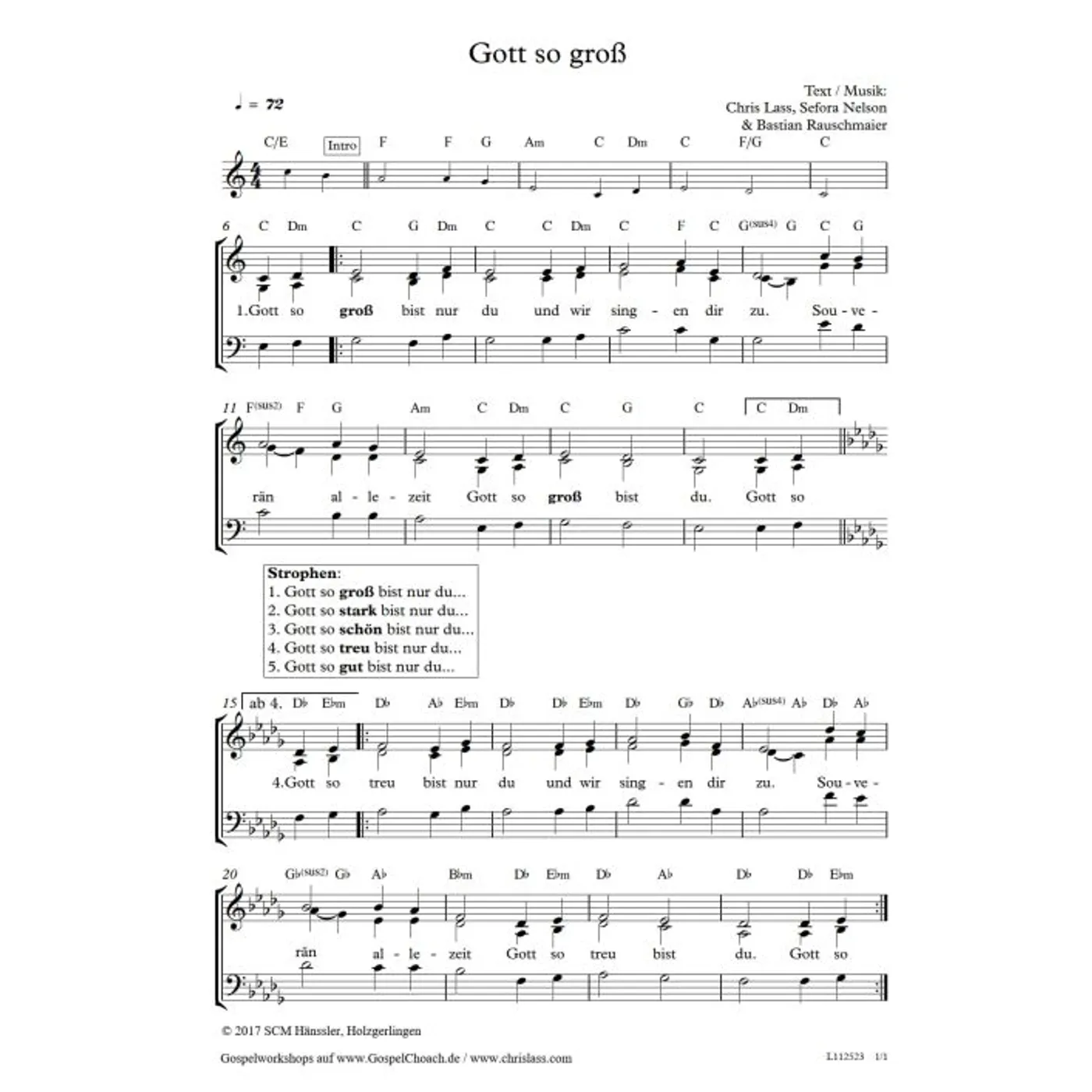 So groß (modern, gemischter Chor, mit Akkorden, vierstimmig, C-Dur) Bastian Benoa (Komposition, Text), Chris Lass (Komposition, Text, Chorsatz), Sefora Nelson (Komposition, Text) | modern, gemischter Chor, mit Akkorden, vierstimmig, C-Dur | 1,50 € |