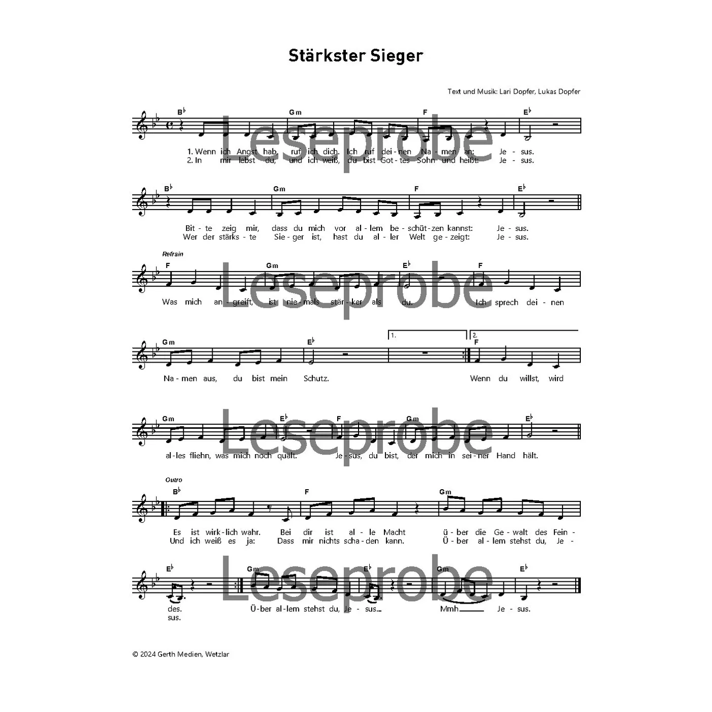 Stärkster Sieger (diese Variante haben Sie gerade ausgewählt) (Kinderlieder, einstimmig, B-Dur) Lari Dopfer (Text, Melodie), Lukas Dopfer (Melodie, Text) |