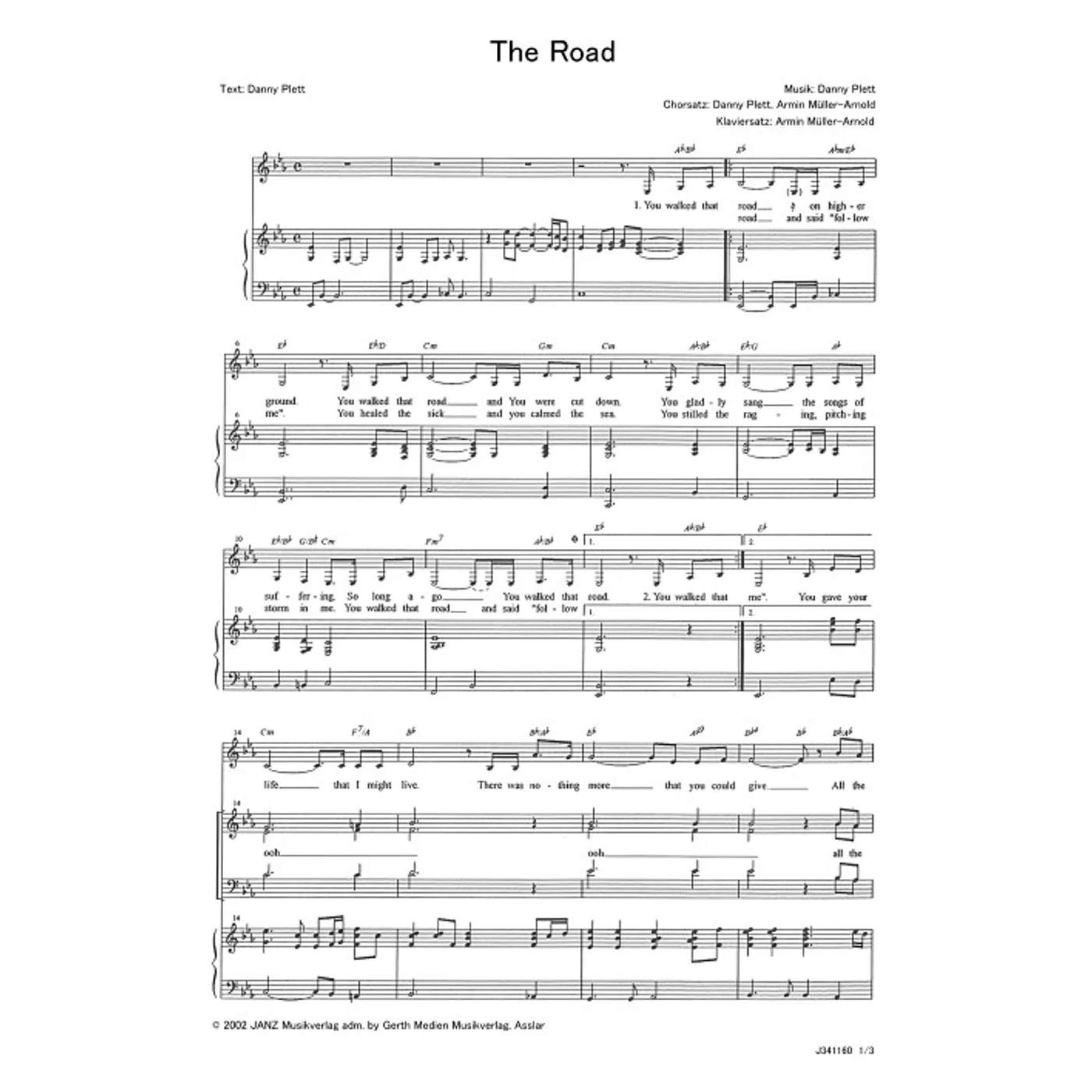 The Road (diese Variante haben Sie gerade ausgewählt) (modern, Klavier, gemischter Chor, mit Akkorden, vierstimmig, Es-Dur) Danny Plett (Komposition, Text, Chorsatz), Armin Müller-Arnold (Klaviersatz) |