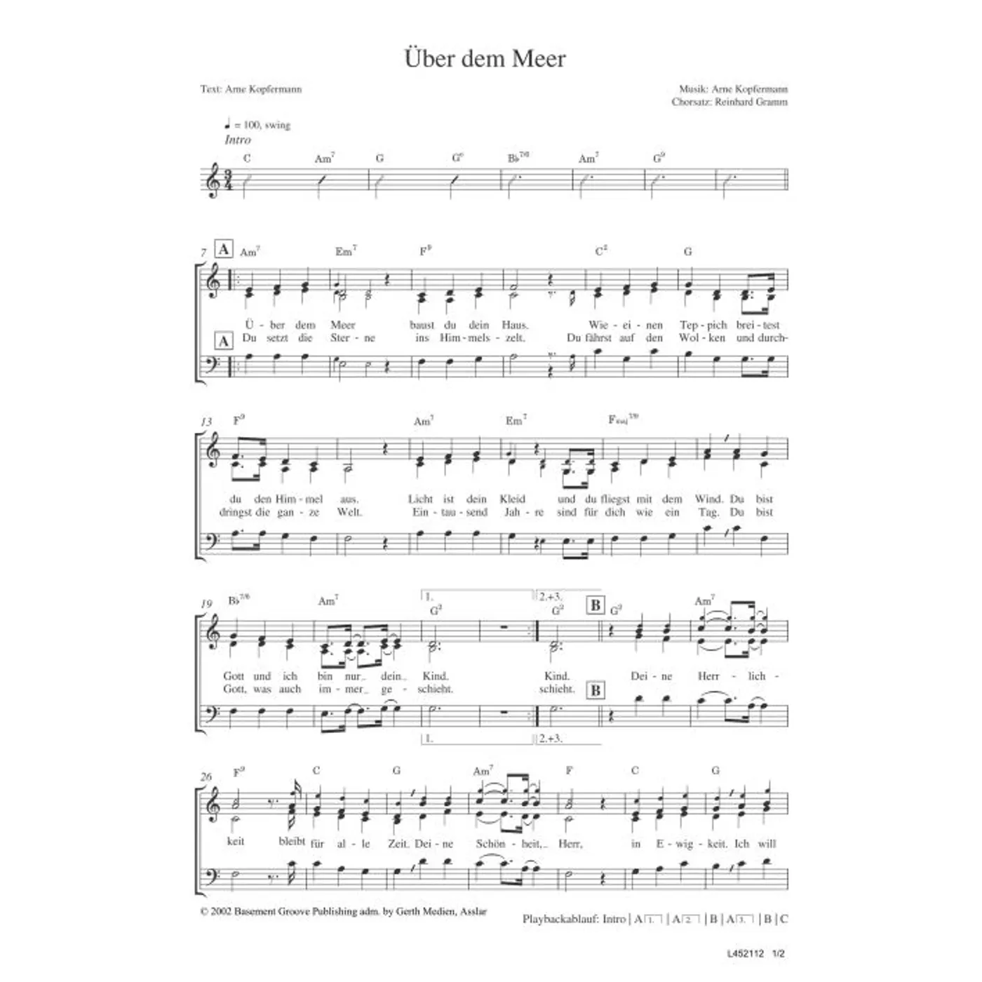 Über dem Meer (diese Variante haben Sie gerade ausgewählt) (modern, Bläserpartitur, Partituren, dreistimmig, gemischter Chor, mit Akkorden, C-Dur) Arne Kopfermann (Komposition, Text), Reinhard Gramm (Chorsatz) |