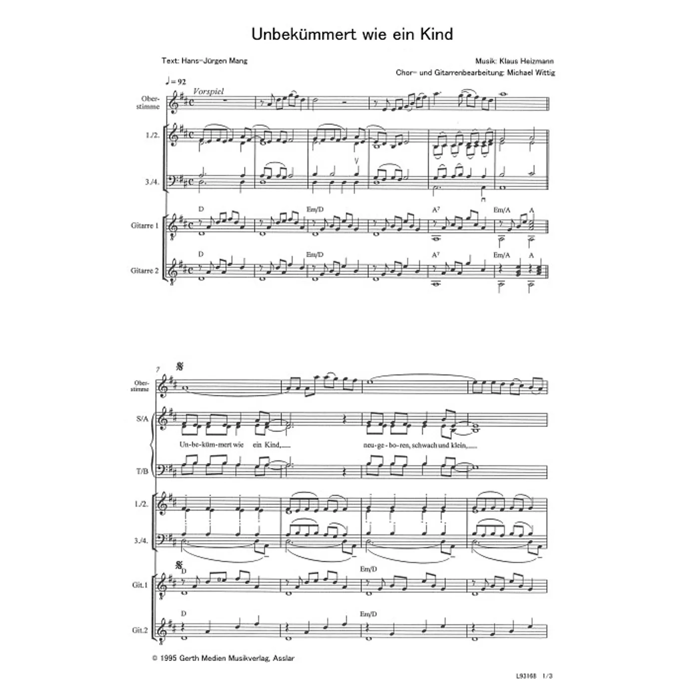 Unbekümmert wie ein Kind (diese Variante haben Sie gerade ausgewählt) (Klavier, gemischter Chor, mit Akkorden, vierstimmig, D-Dur) Hans-Jürgen Mang (Text), Michael Wittig (Bearbeiter, Chorsatz, Bearbeitung), Klaus Heizmann (Komposition) |