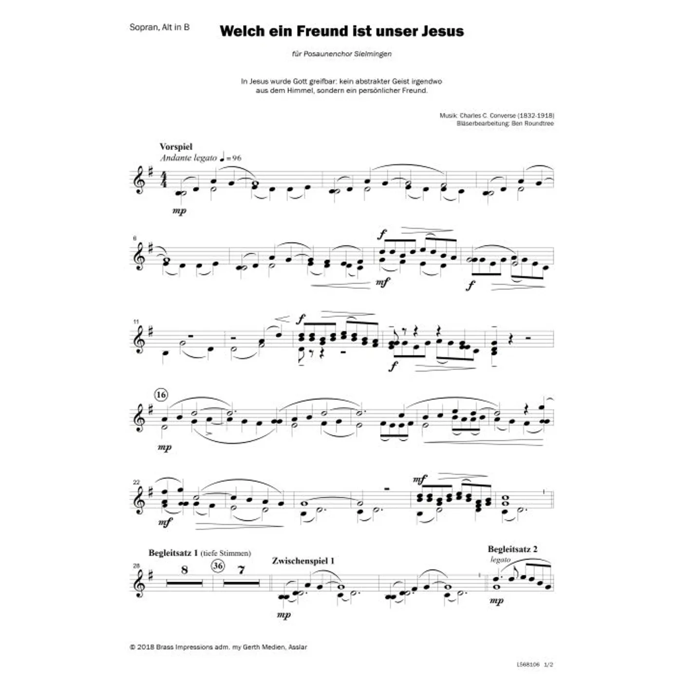 Welch ein Freund ist unser Jesus (modern, Bläser, Bläserpartitur, Partituren, vierstimmig) Ben Roundtree (Bläsersatz) | modern, Bläser, Bläserpartitur, Partituren, vierstimmig | 3,80 € |