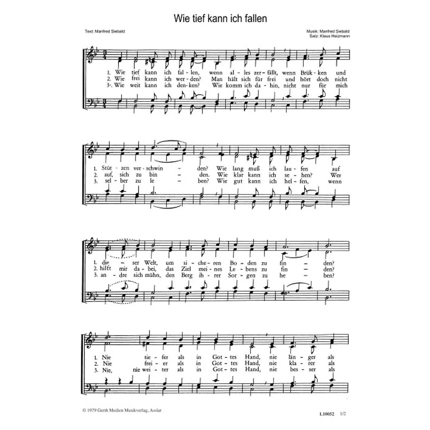 Wie tief kann ich fallen (diese Variante haben Sie gerade ausgewählt) (traditionell, gemischter Chor, vierstimmig) Manfred Siebald (Komposition, Text), Klaus Heizmann (Bearbeiter) |