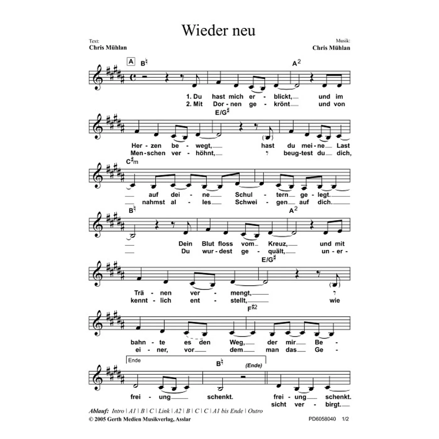 Wieder neu (diese Variante haben Sie gerade ausgewählt) (einstimmig, mit Akkorden, h-Dur) Chris Mühlan (Komposition, Text) |