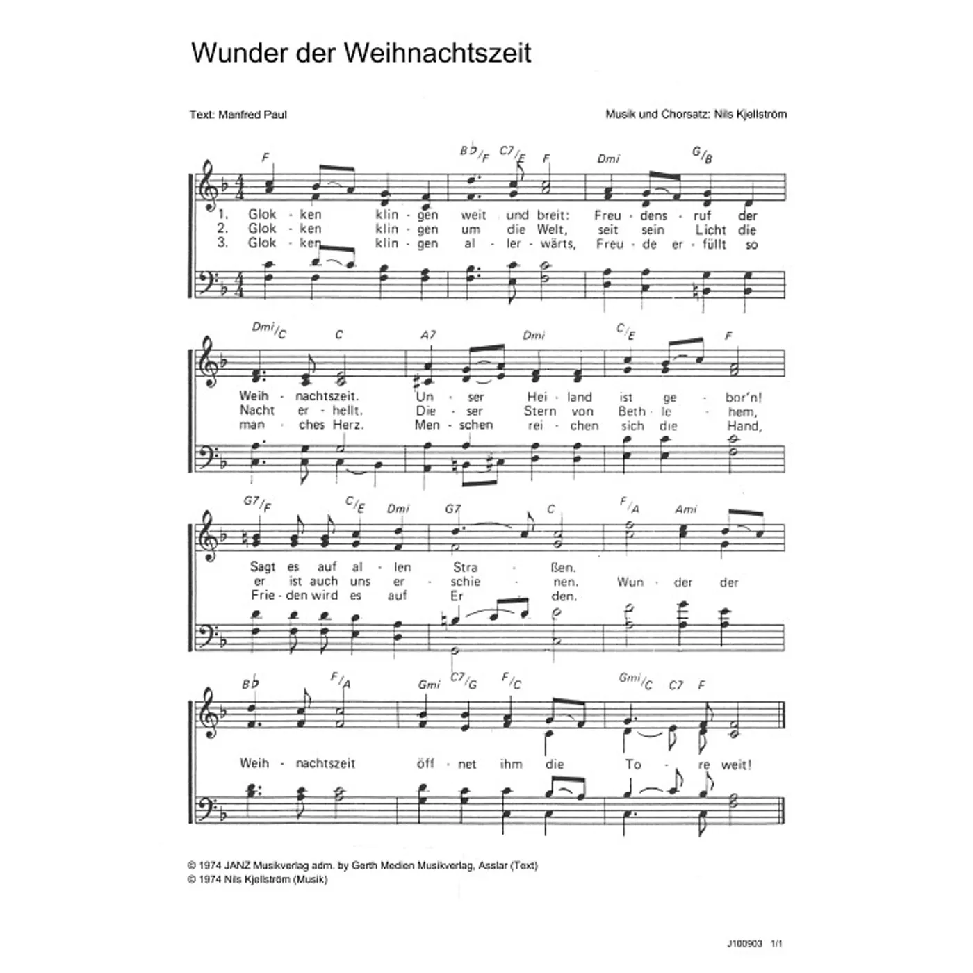 Wunder der Weihnachtszeit (diese Variante haben Sie gerade ausgewählt) (traditionell, gemischter Chor, mit Akkorden, vierstimmig, F-Dur) Nils Kjellström (Komposition, Chorsatz), Manfred Paul (Text) |